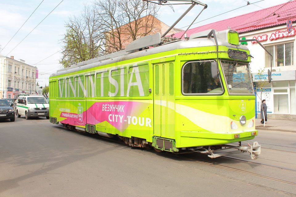 До 2015-го трамвай було пофарбовано у біло-жовтий колір, після чого його замінили на жовто-блакитний. Стюардесам-екскурсоводкам також пошили патріотичну форму. У 2019 році трамвай знову оновили — відтоді він має червоно-синій колір кузова і нове ім'я — Vinnytsia City Tour.