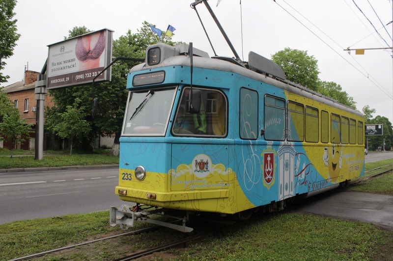 Тоді з трамваю зняли брендовану рекламу цюрихського балету та нанесли принт швейцарського прапора та гербу Вінниці. Також додали напис українською та німецькою мовами: «Вінниця дякує Швейцарії за підтримку України!» У такому вигляді вагон наразі курсує містом.