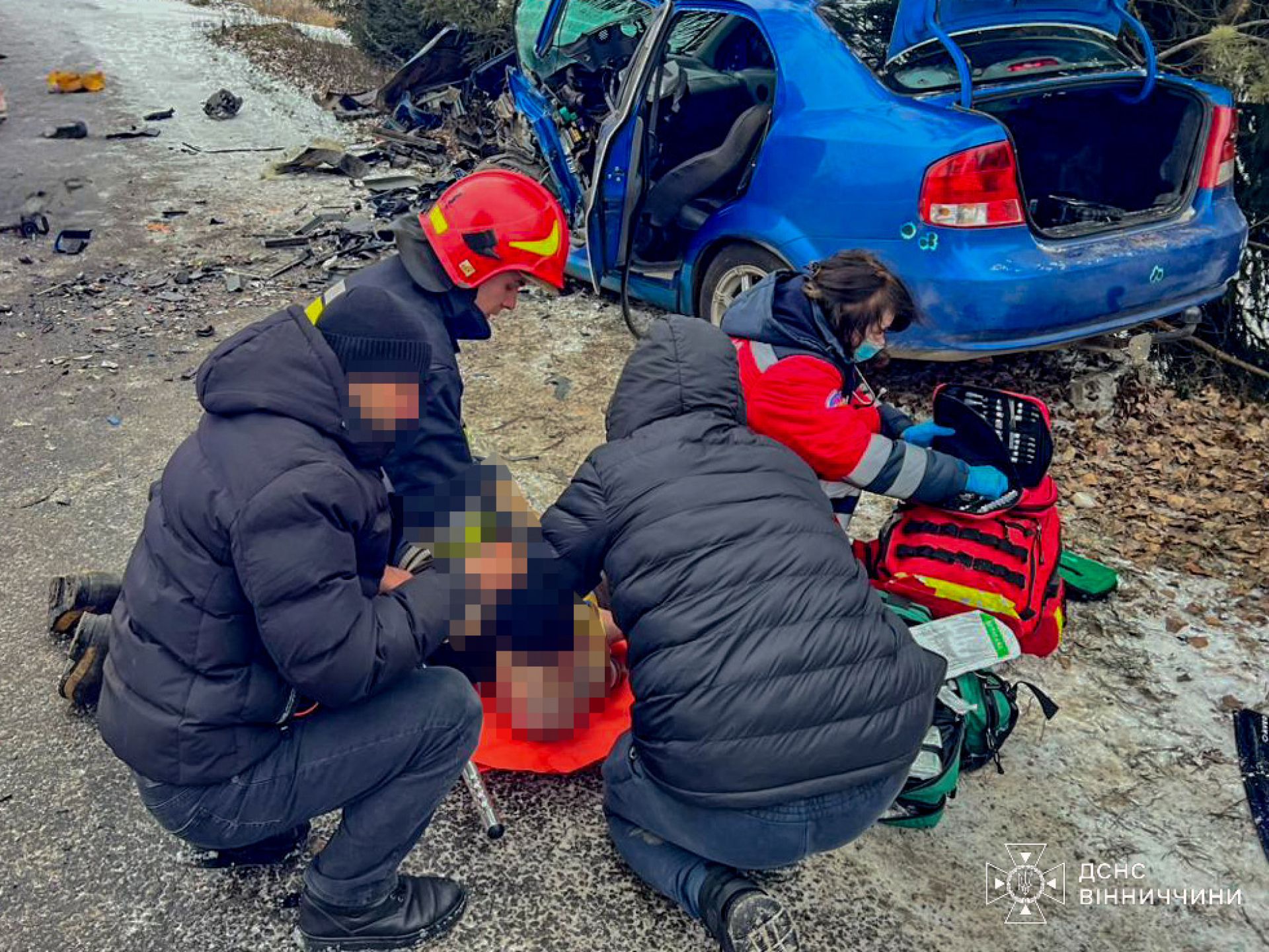 Аварія сталася близько 15 години 26 грудня поблизу села Лука-Мелешківська. Слідчі попередньо встановили, що 73-річна водійка автомобіля Nissan допустила зіткнення з Chevrolet, за кермом якого перебував 61-річний житель Вінницького району. Сила удару була такою, що чоловік опинився у металевій пастці власної автівки.
