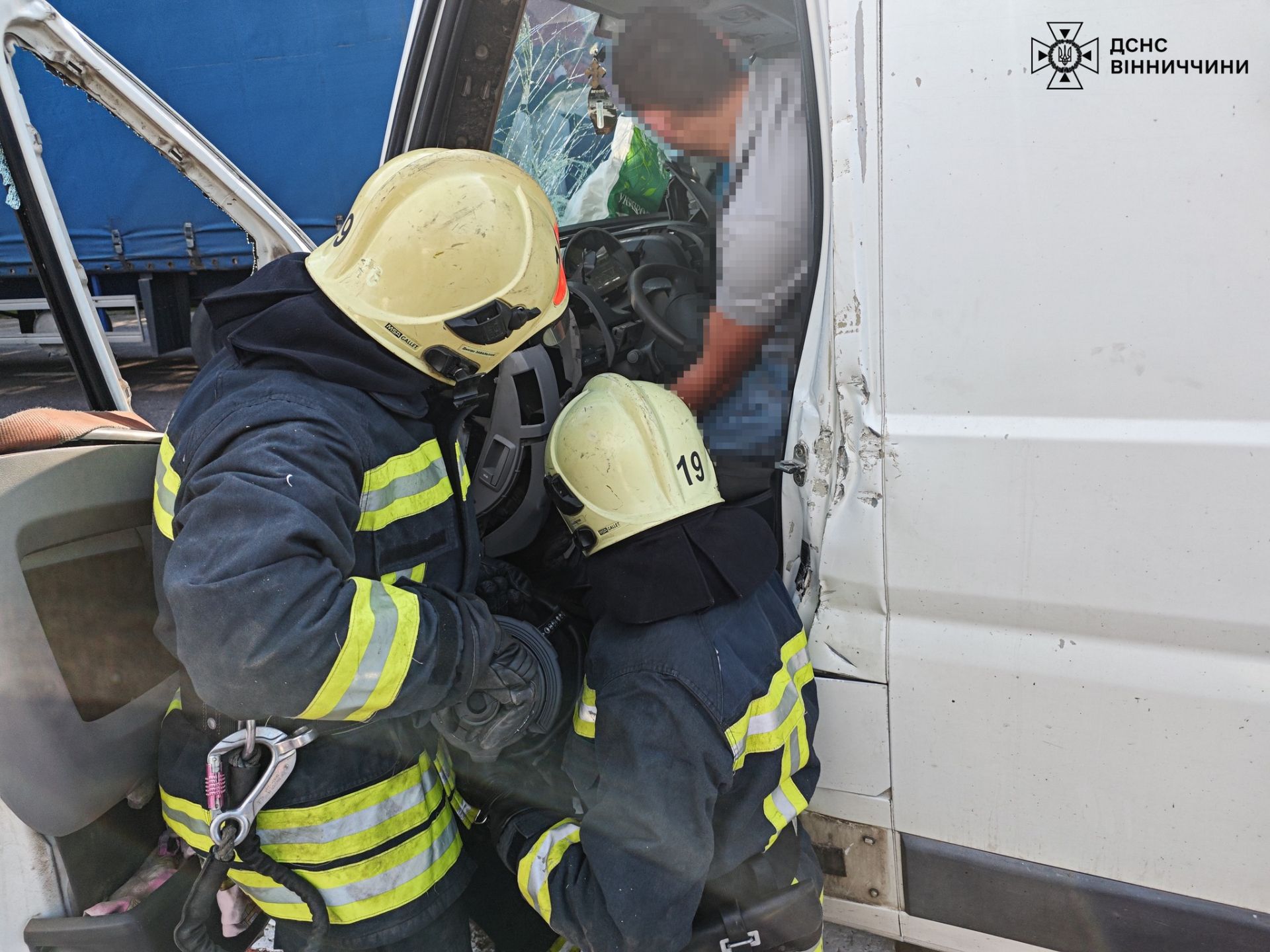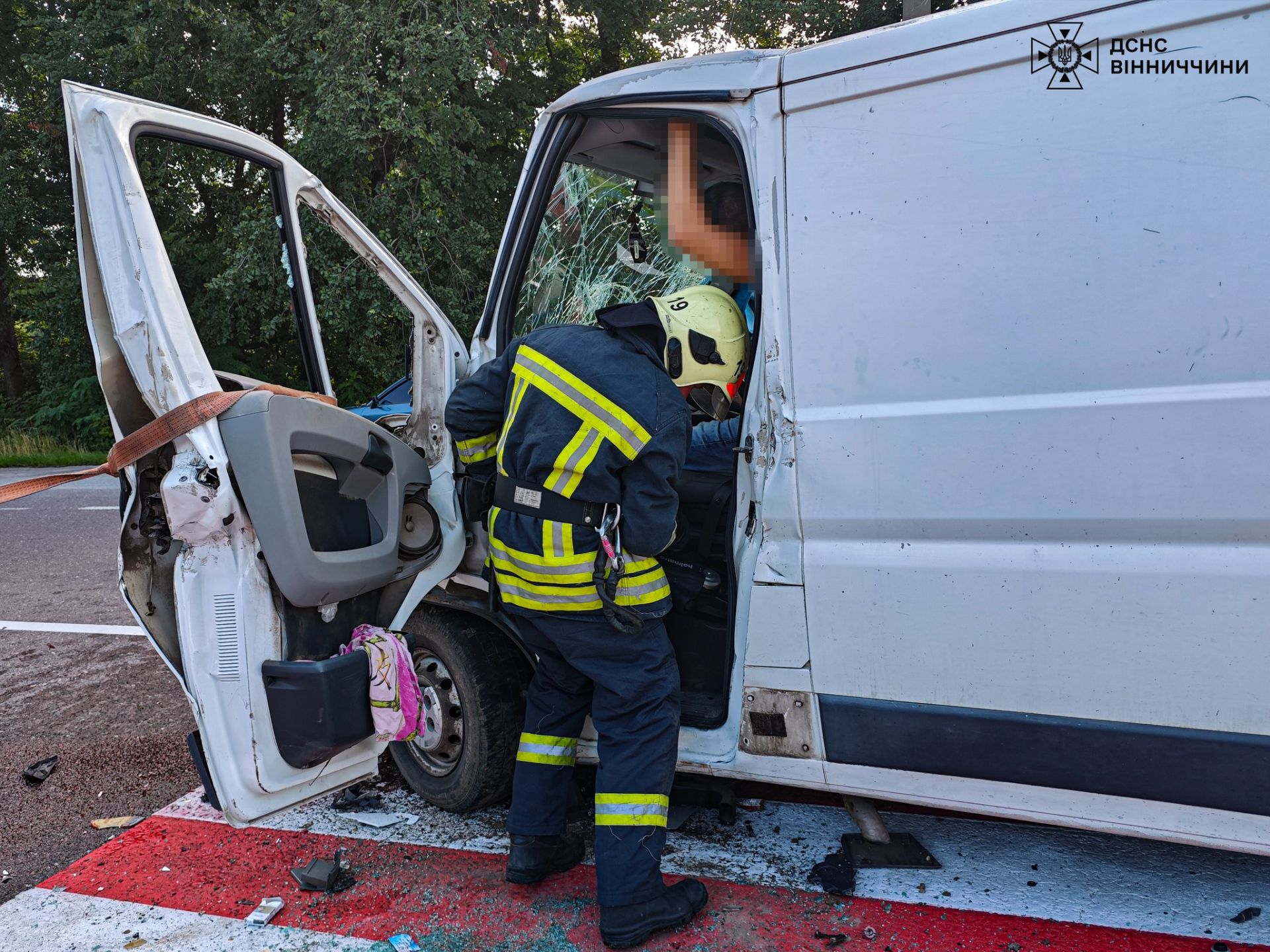 Внаслідок аварії 28-річного водія мікроавтобуса затисло в салоні. Бійці ДСНС використали спецінструмент, щоб визволити чоловіка з понівеченого авто, та передали його медикам.