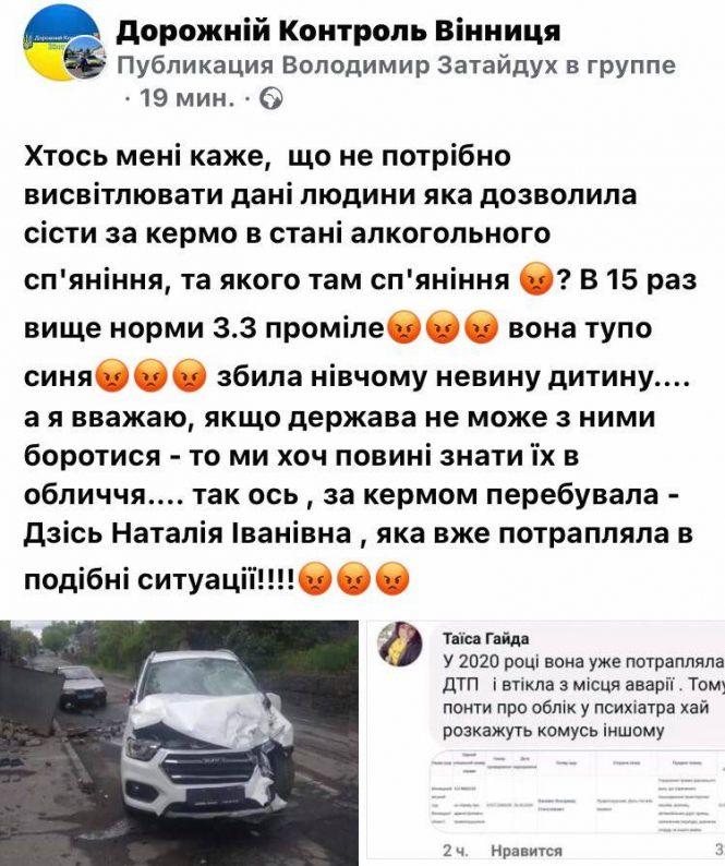 Адміністратори групи «Дорожній Контроль Вінниця» опублікували допис стосовно винуватиці ДТП на Богуна: