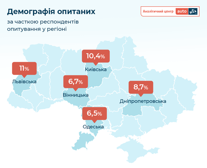 Варто зазначити, що про наміри розглянути питання купівлі нового авто у своїх відповідях повідомили не лише місцеві жителі згаданих регіонів, а й громадяни, які прибули туди тимчасово. Вочевидь, така потреба обумовлена істотними ушкодженням чи втратою ними власного транспорту внаслідок воєнних дій. Найчастіше про готовність розглянути цей варіант повідомляли переміщені особи з Київщини, Львівщини, Вінницької та Хмельницької областей.