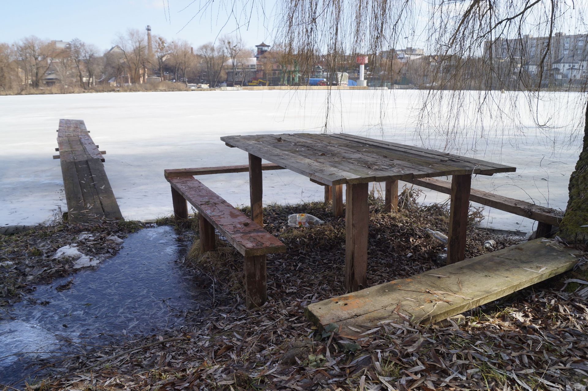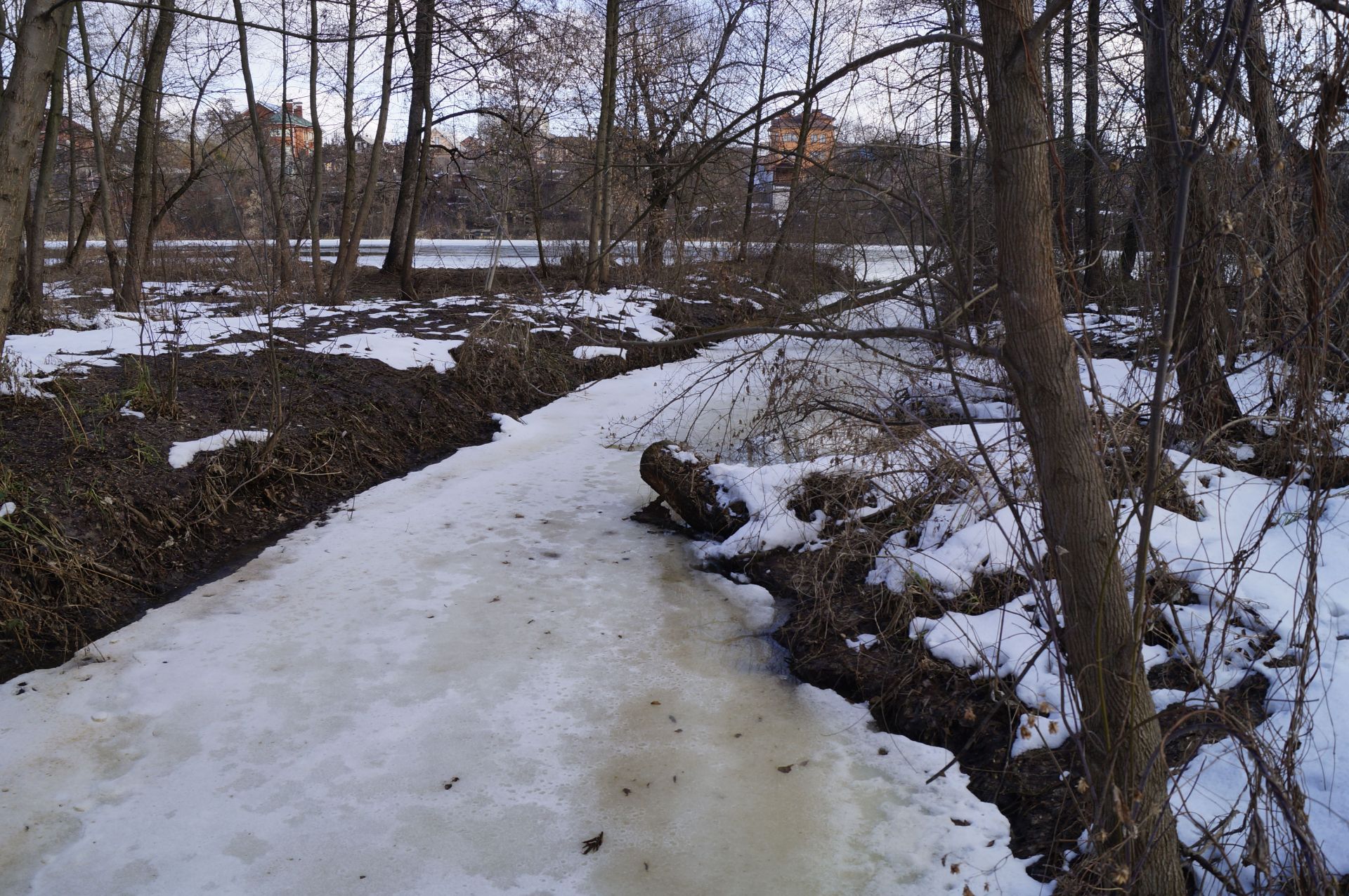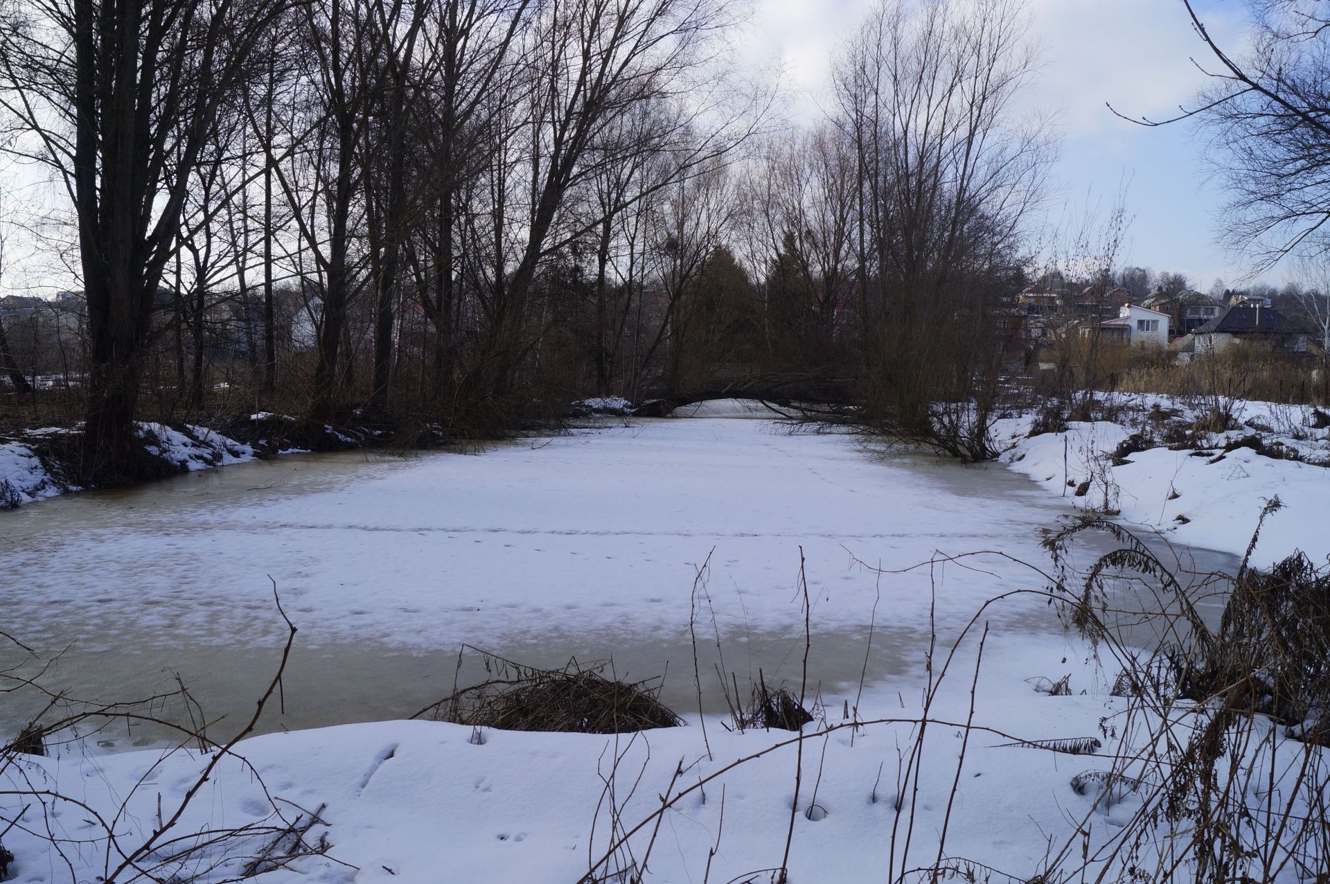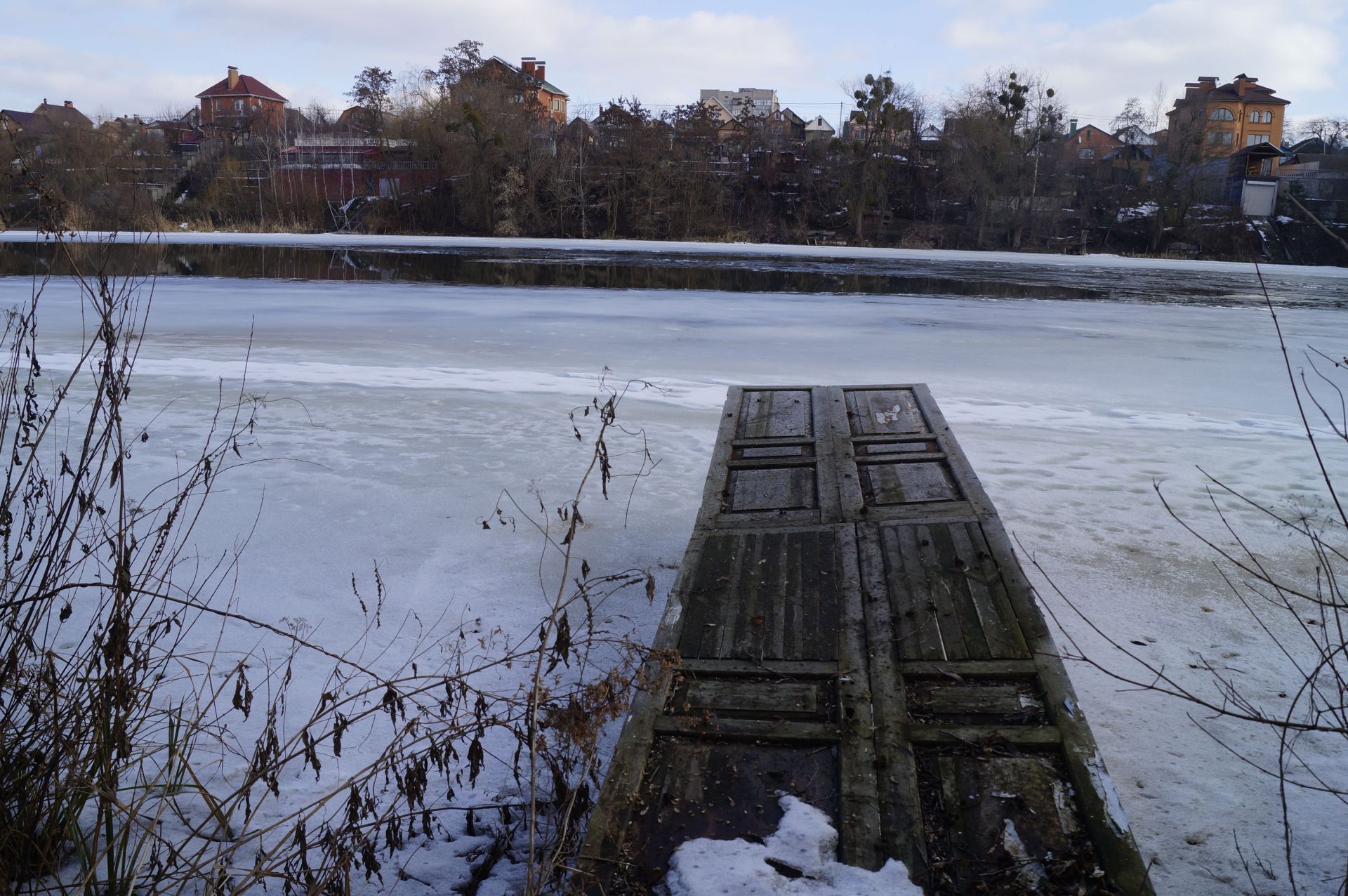 Але безперешкодна подорож тривала недовго. Дорогу нам перегородив паркан одного з будинків. Довелося обходити його по замерзлому Бугу.