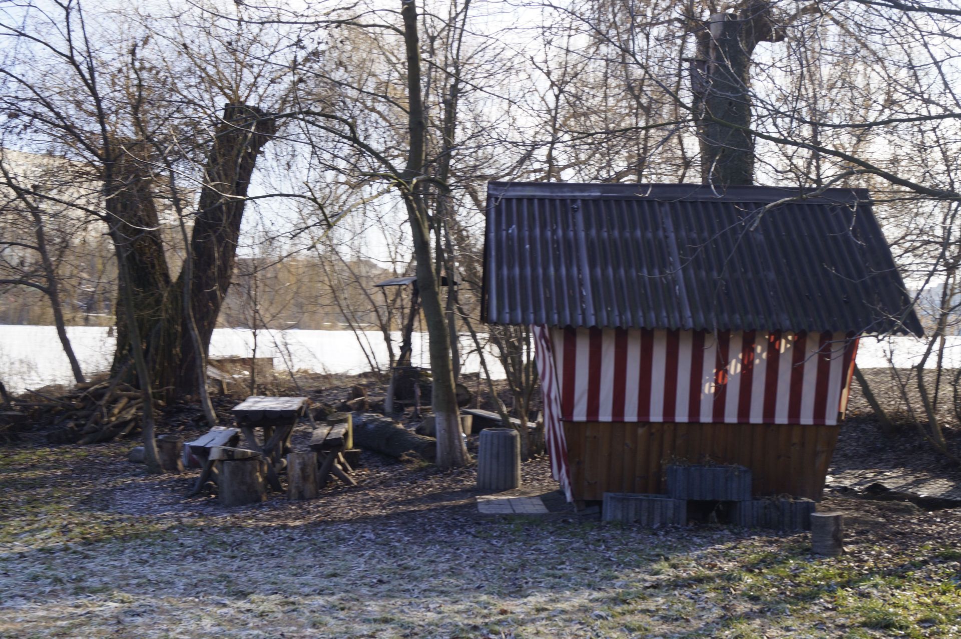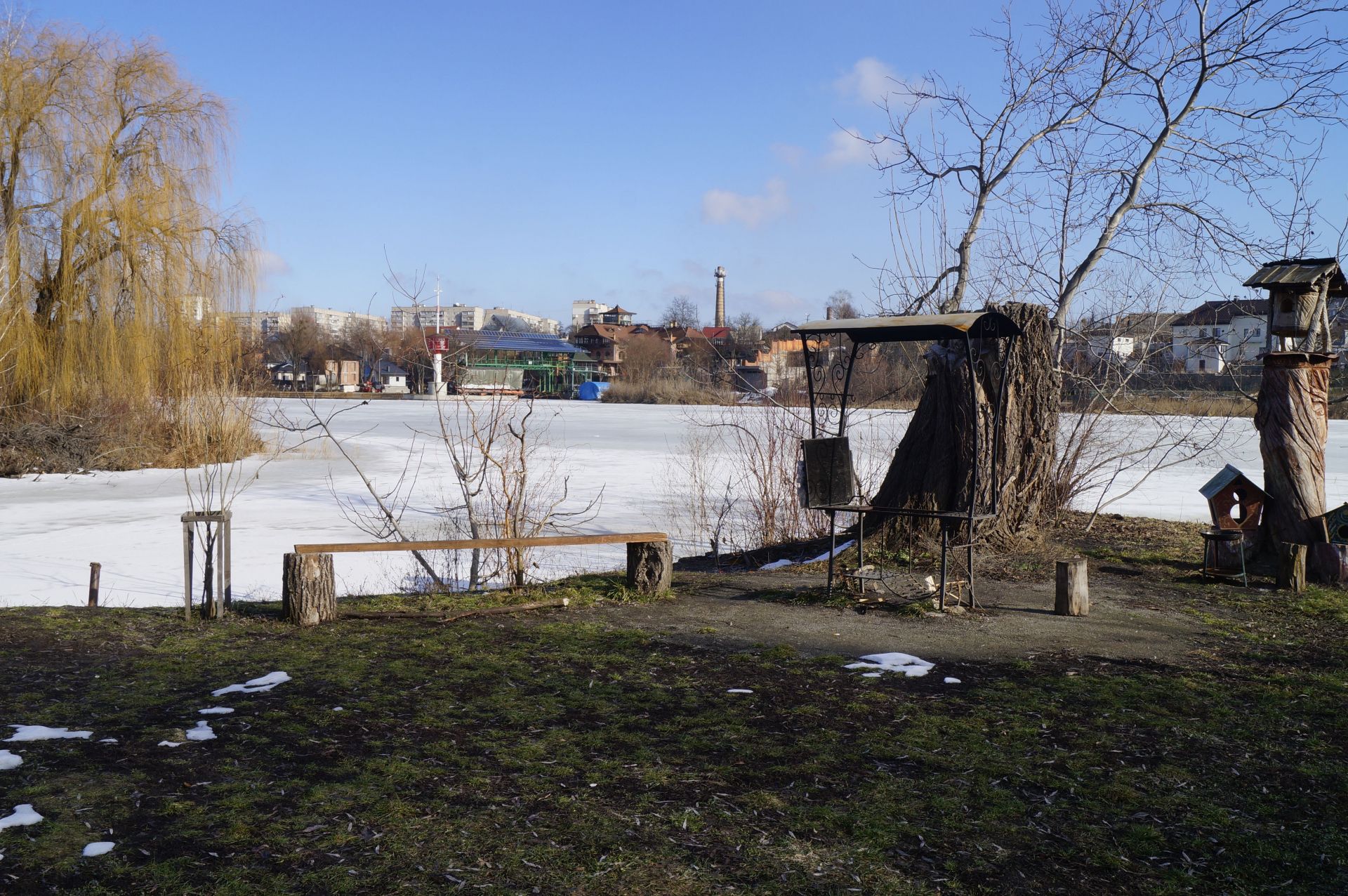 Обходимо станцію дорогою. За нею огороджене місце відпочинку з альтанками, дитячими качелями, мангалами та столами. Огороджена територія виходить до самої річки.