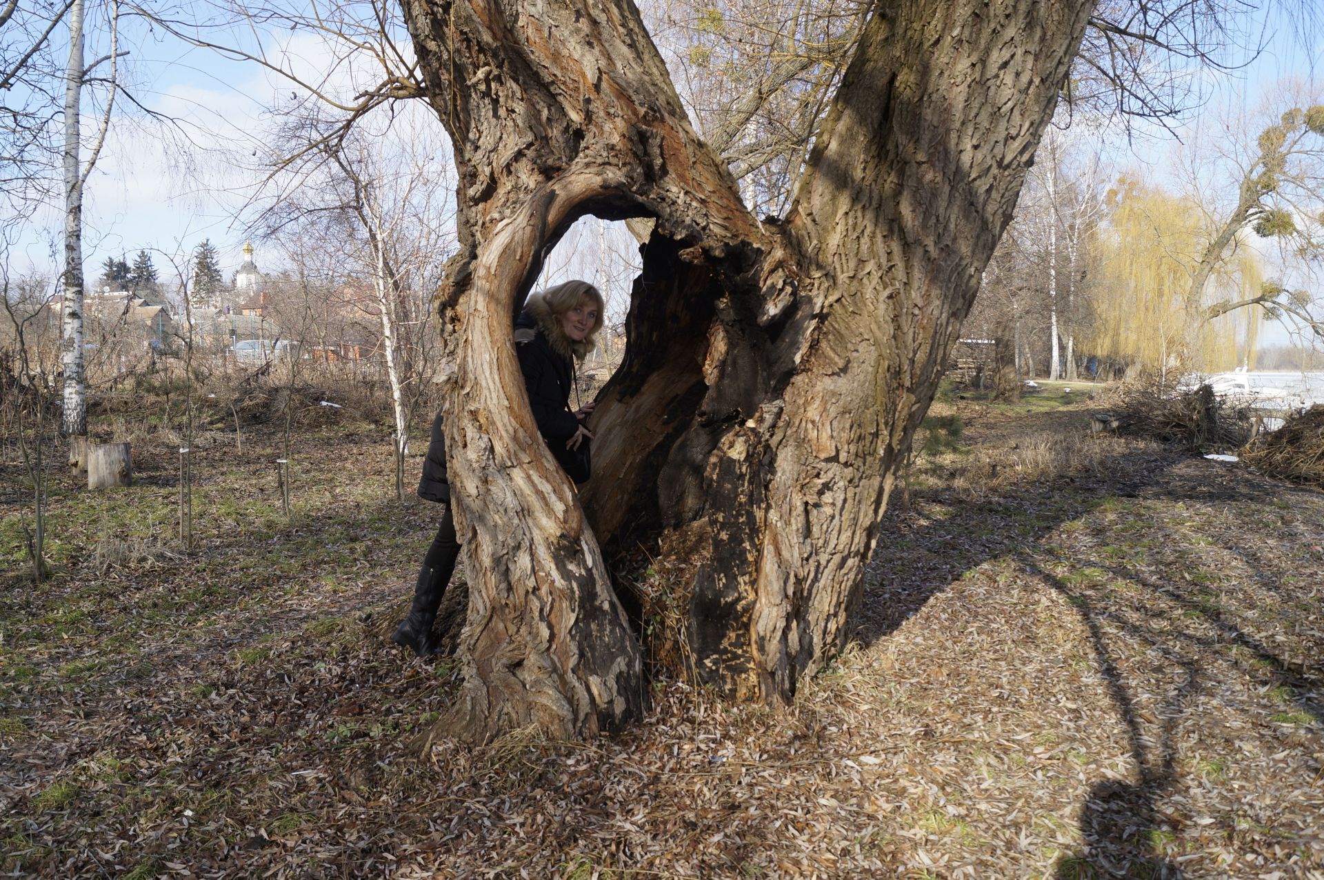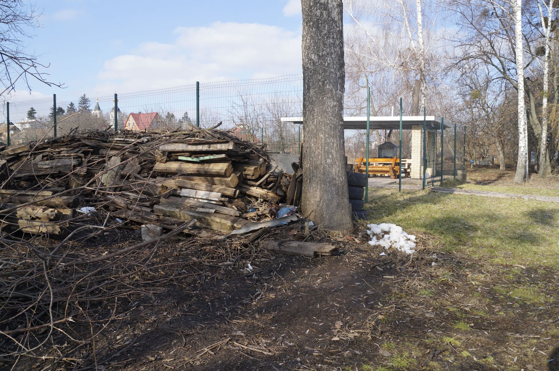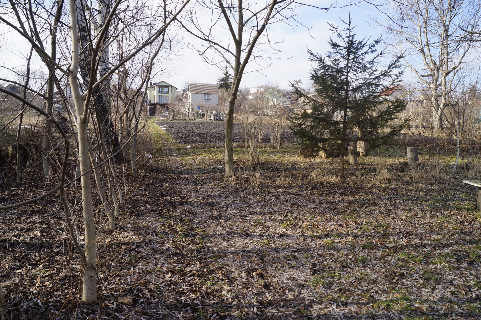 Обійти будинок берегом справді майже не можливо. Паркан виходить під саму річку. За «маєтком» ми вийшли на дуже приємну місцину: чистий просторий берег, не порослий бурянами, зручна стежка. До берега спускаються городи. Видно, що місцеві мешканці прибирають територію. Після зими тут майже немає сміття, зате зустрічаються посаджені та підв'язані молоденькі деревця.