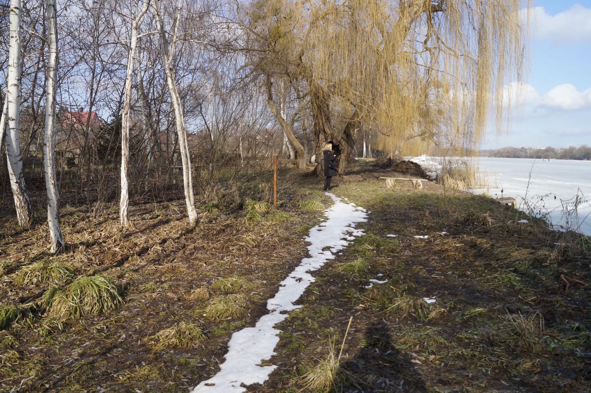 – Можливо трохи по берегу і пройдете, якщо не боїтесь болота, - каже жінка. - Але там далі пройти не можна. Останні двадцять років там все позахоплювали під самий берег до самого лісу і побудували будинки. Люди поробили собі окремі виходи до річки.