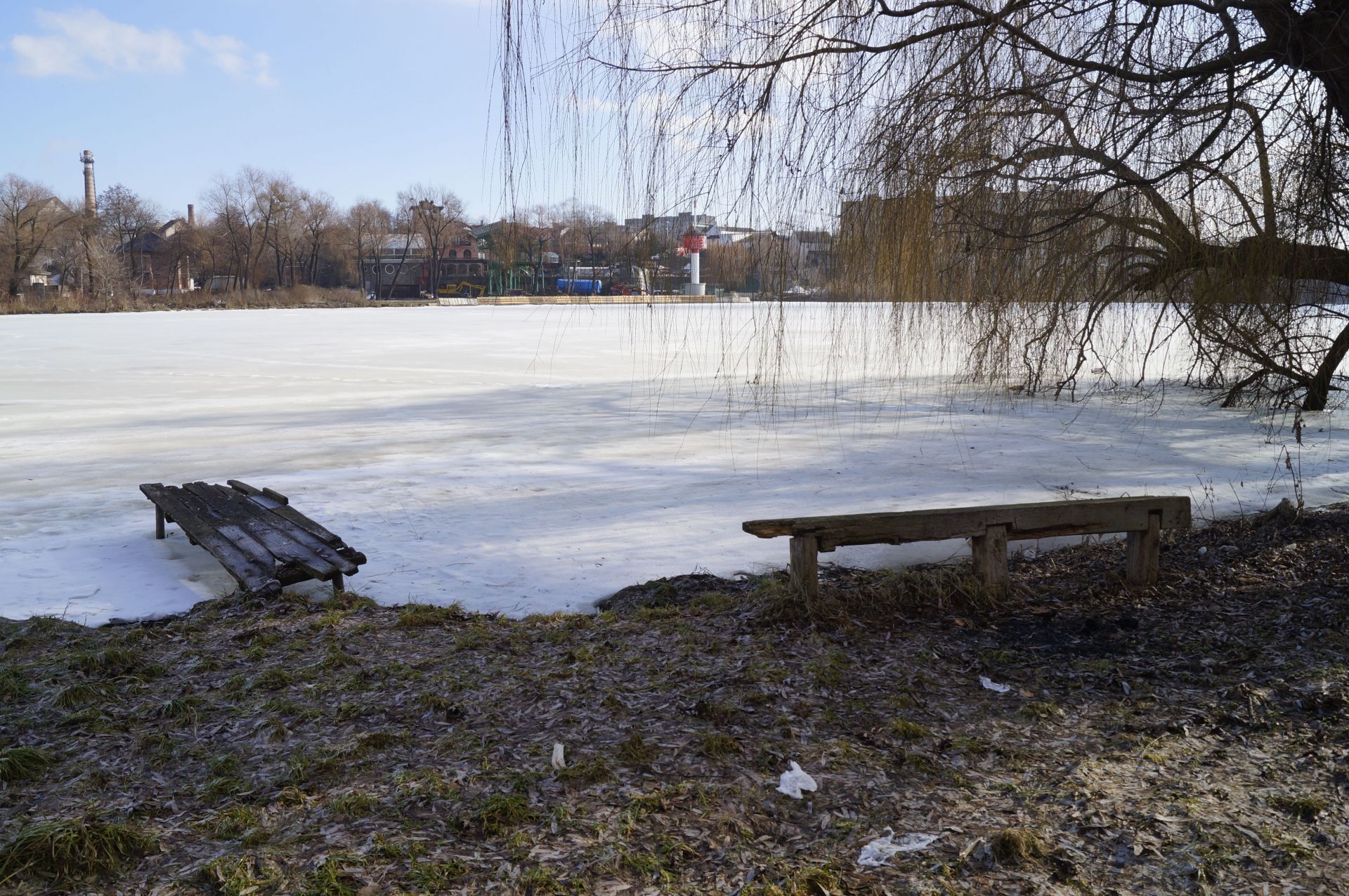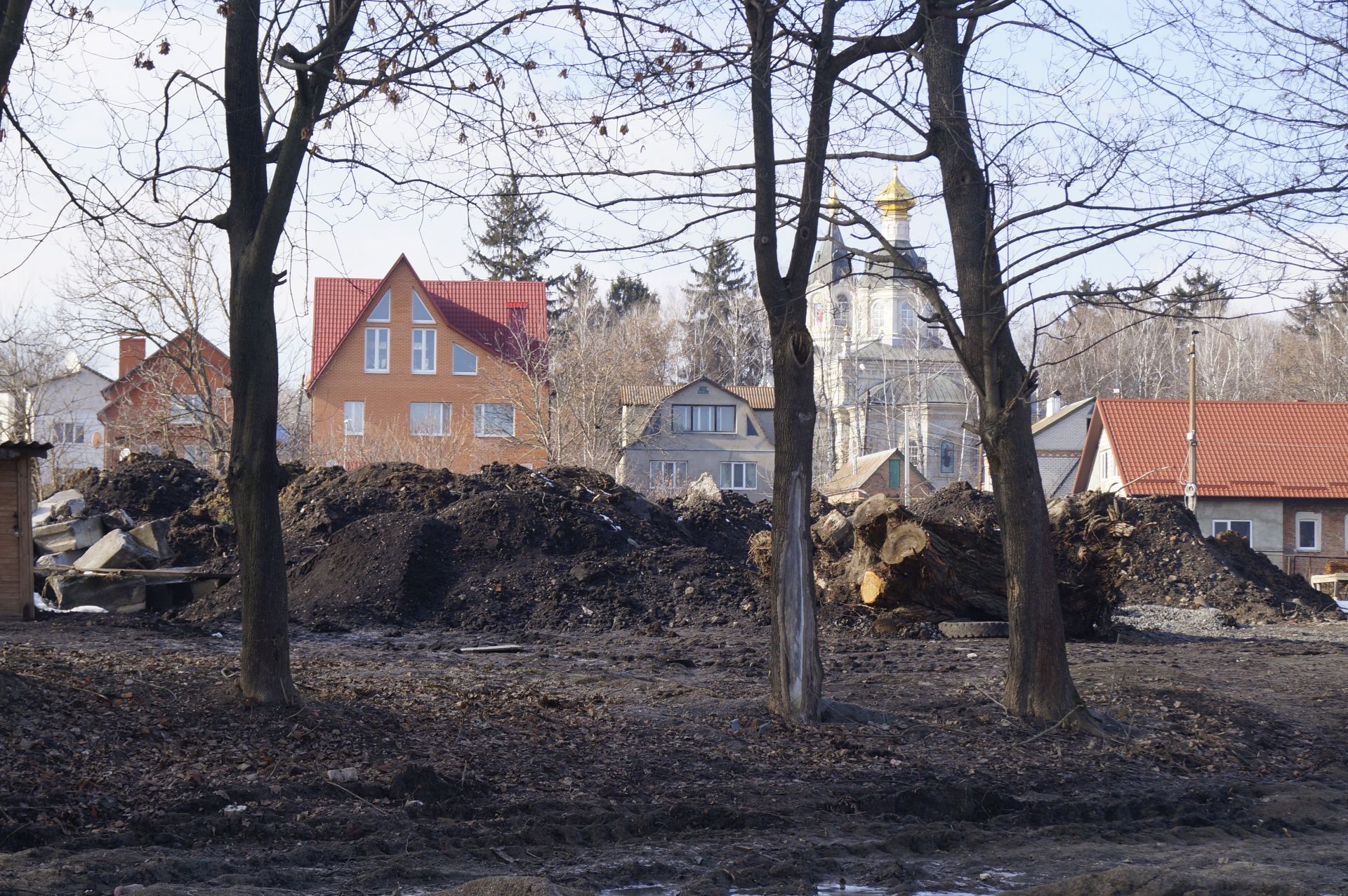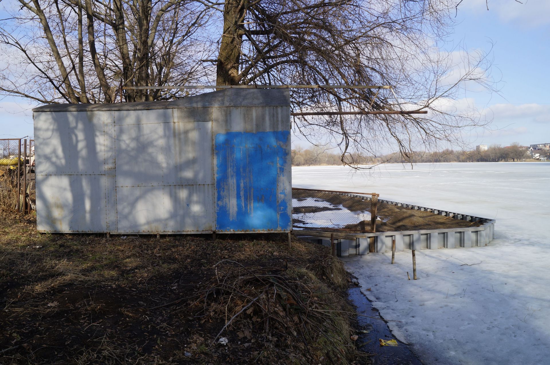 Трохи далі розгорнули будівництво. Тут «нарощують» берег за рахунок річки. Обійти це все можна лише по льоду. Вхід на територію огороджений.
