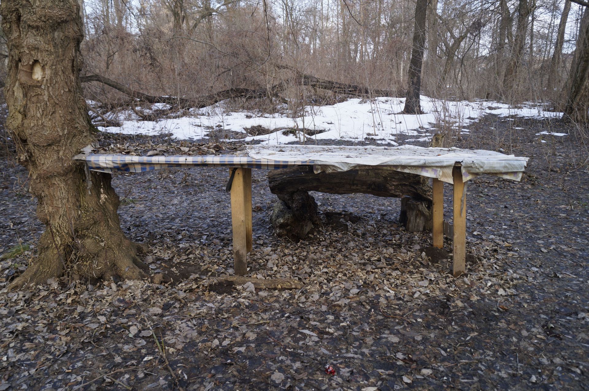 Трохи побродивши ними в надії вийти на якусь стежку, ми її так і не знайшли. Були змушені повернутися назад і піднятись на вулицю Івана Богуна.