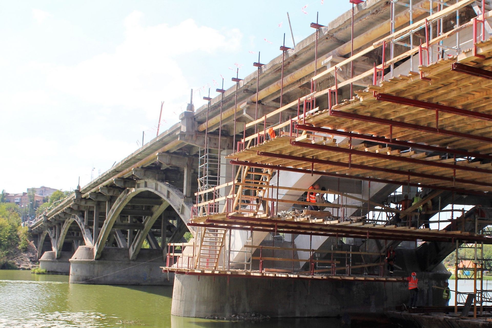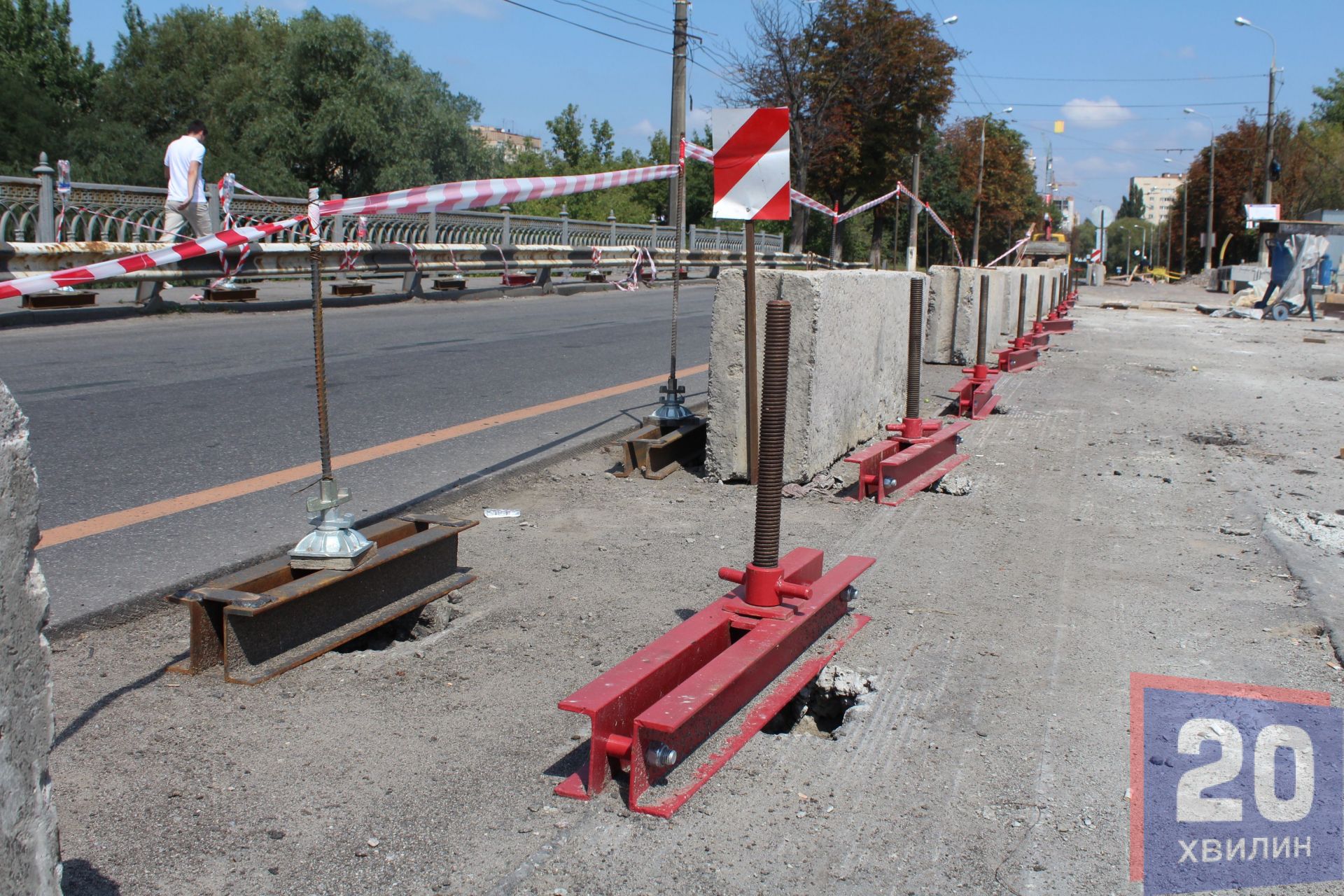 Реконструкція Київського мосту триває з березня. За цей час робочі зняли асфальт з половини шляхопроводу, укріпили під’їзди на міст, забетонували частину опор та інше.