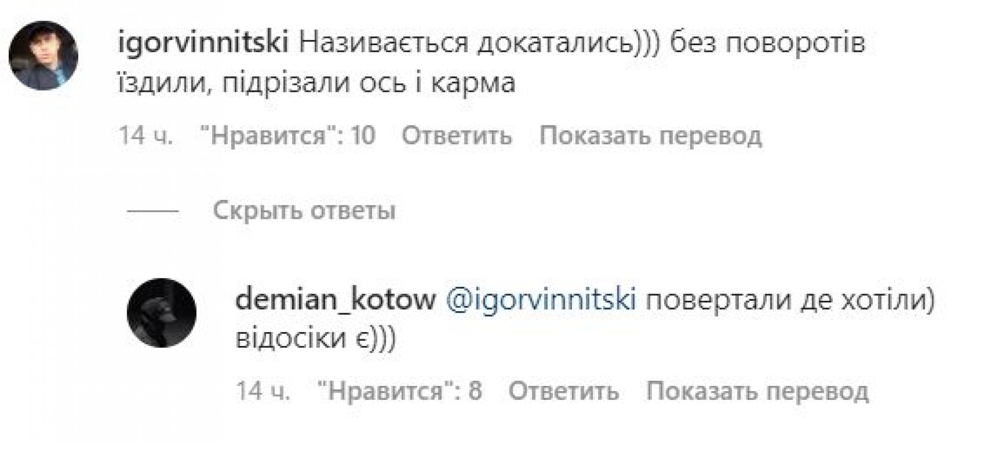 Користувач instagram vanchik162004 написав: «Це напевно найдорожче ДТП у Вінниці». Такої ж думки vinn_art__: «Мабуть, найдорожча аварія у Вінниці».