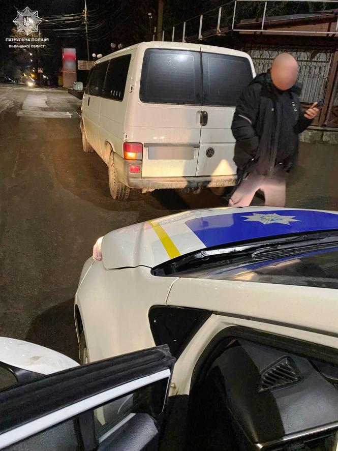 Під час комендантської години за порушення ПДР на Хмельницькому шосе патрульні зупинили автомобіль Volkswagen Transporter. За кермом був 57-річний водій. Про це інформує патрульна поліція Вінницької області.