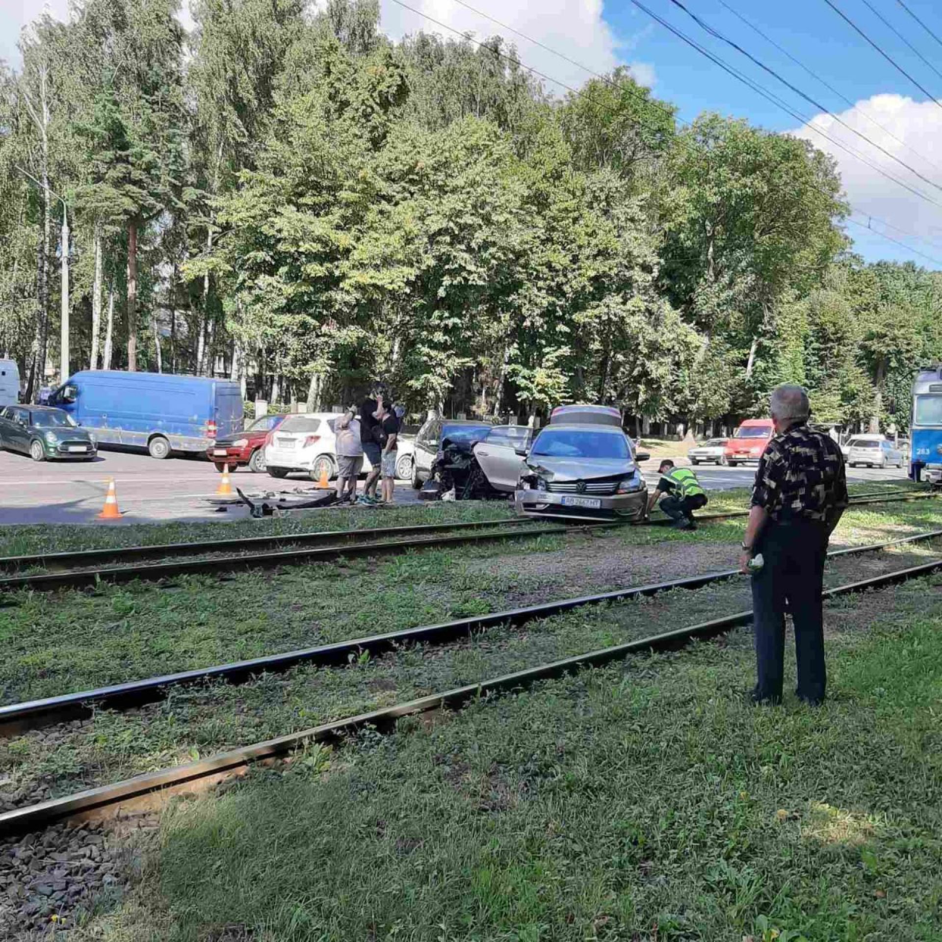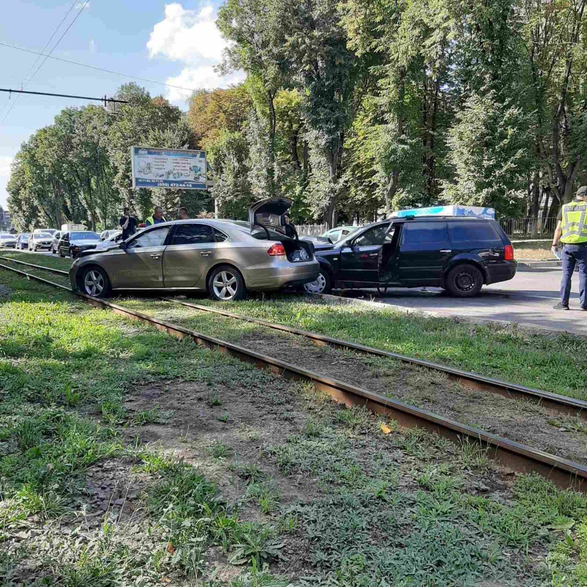 - На дорозі зіткнулися дві автівки. Одну із них закинуло на трамвайну колію. На місці події швидка та поліція.
