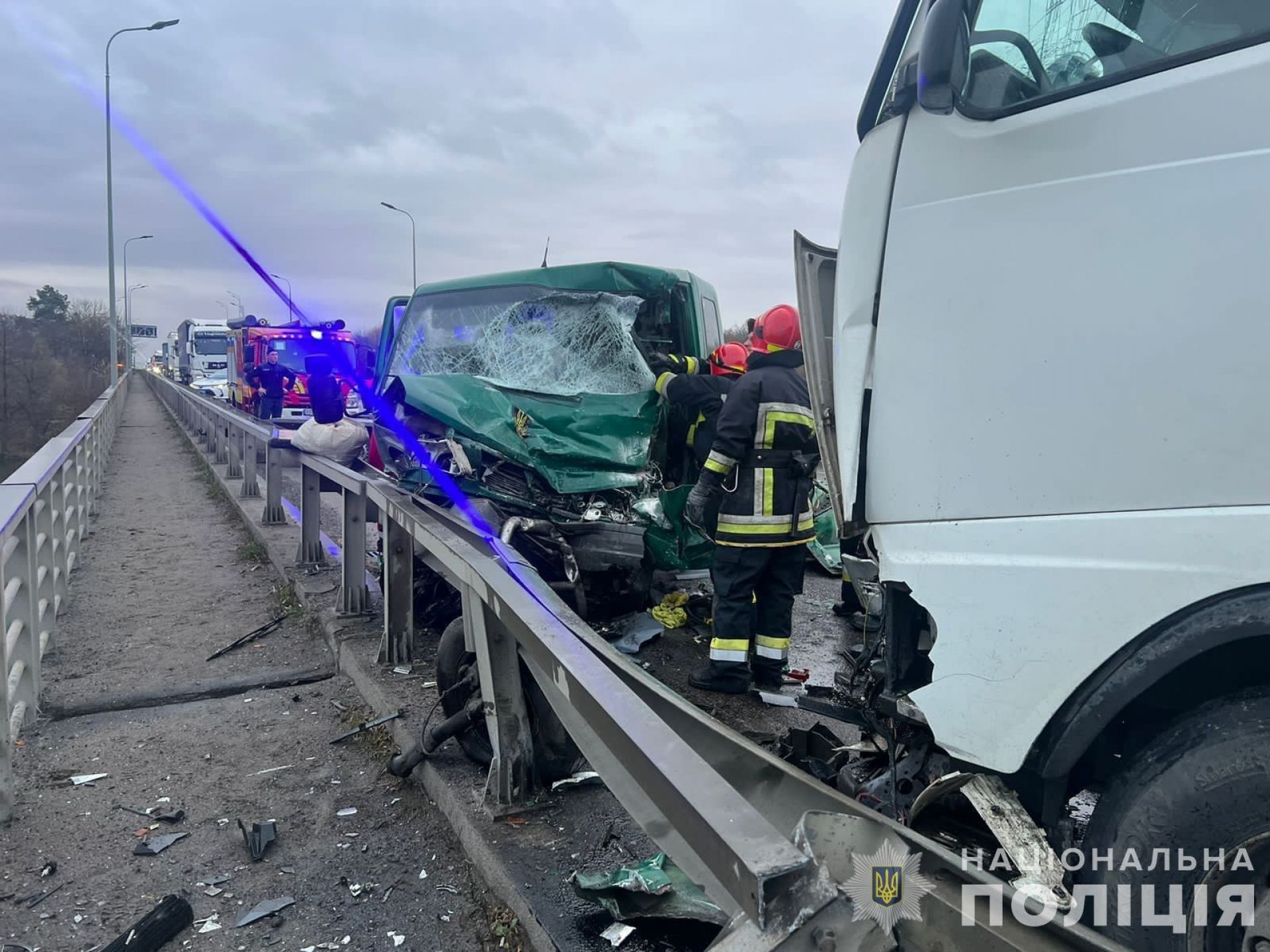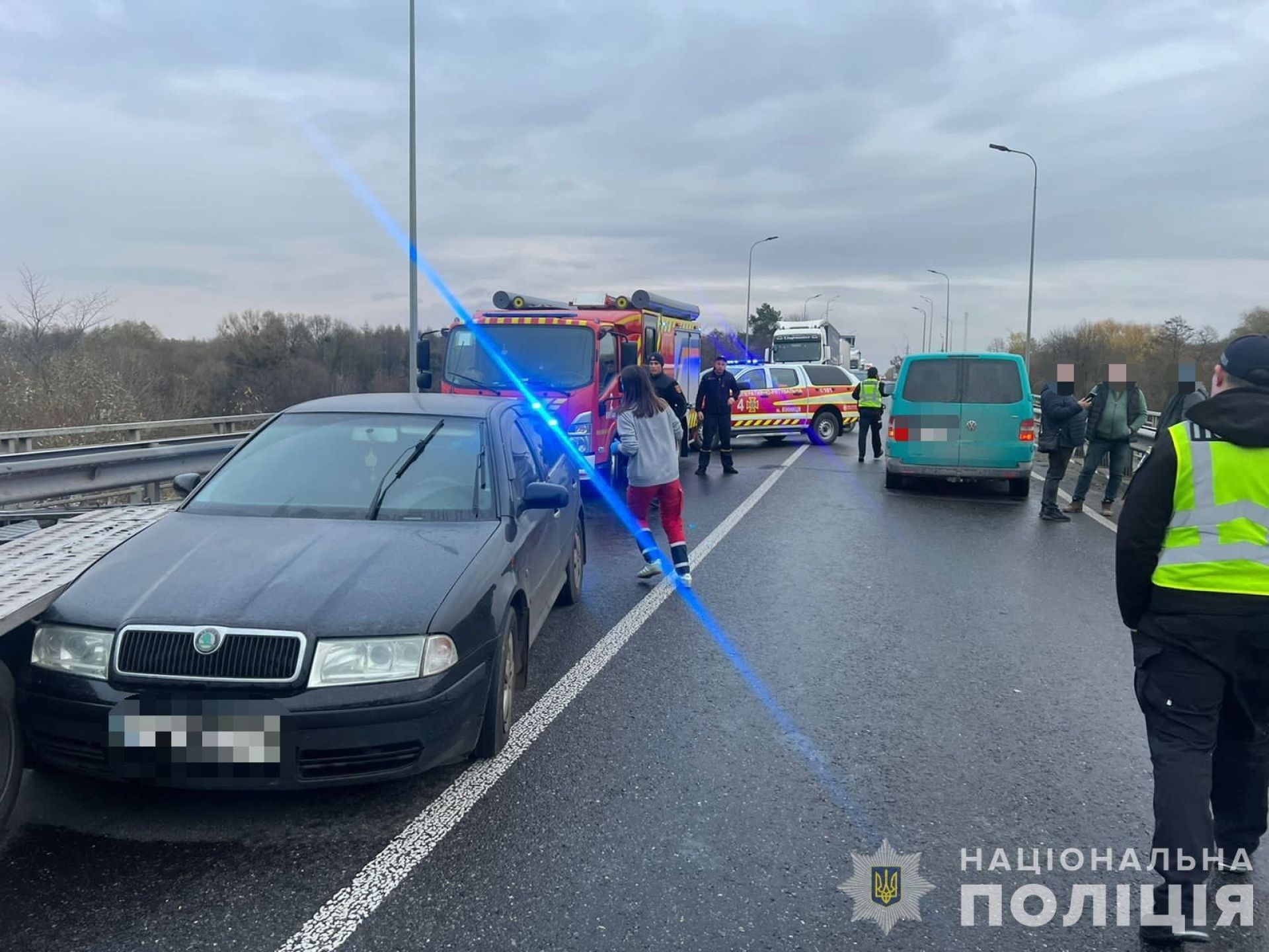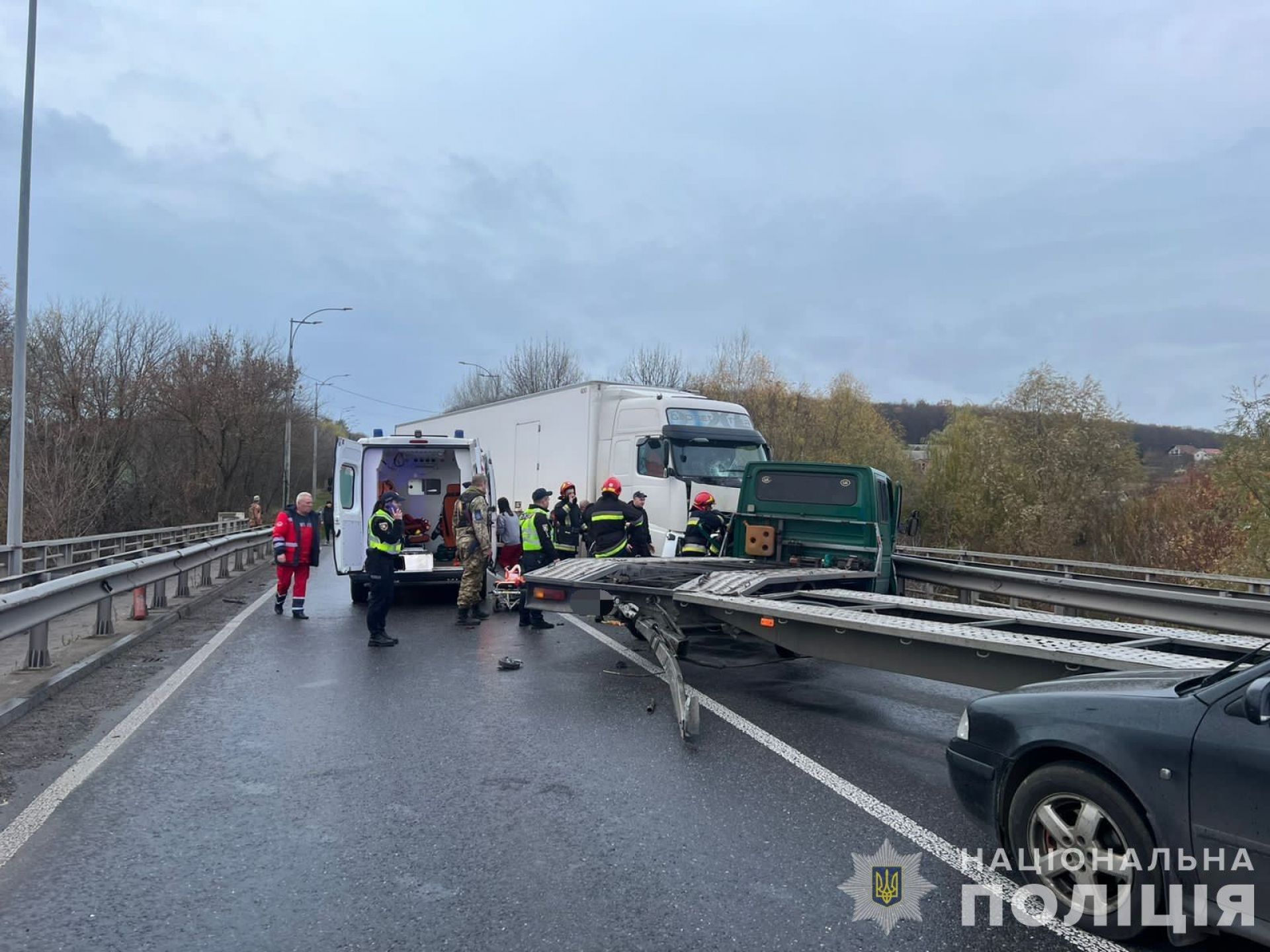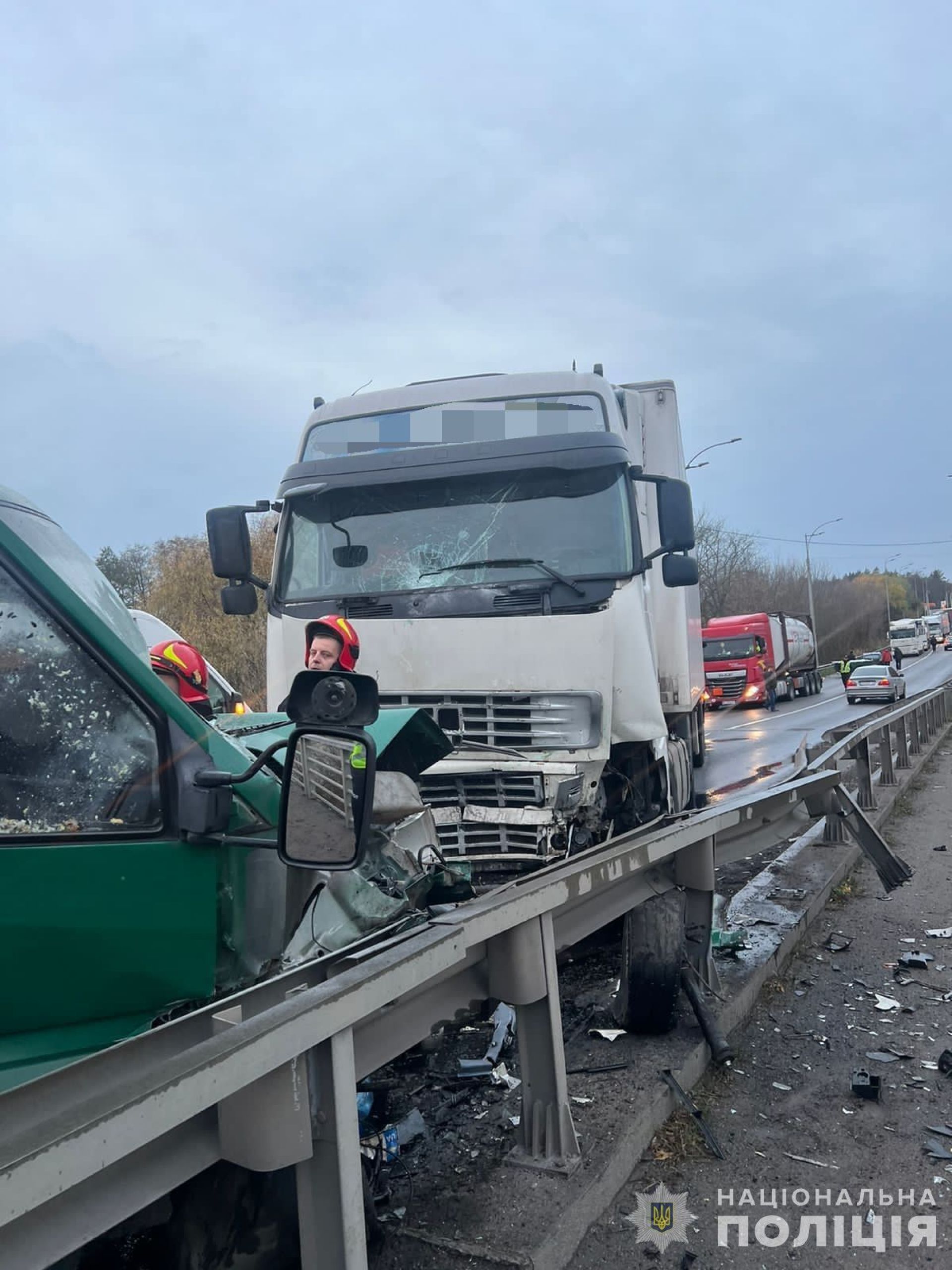 — За попередньо інформацією, водій автопоїзда Volvo не впорався з керуванням, виїхав на смугу зустрічну руху та допустив зіткнення з вантажівкою Mercedes з напівпричепом. У результаті аварії — причіп Mercedes відкинуло на смугу зустрічного руху, де він зіткнувся з автомобілем Volksagen під керуванням 41-річного жителя міста Вінниця. Легковик Skoda, яким керував 41-річний вінничанин, що рухався позаду вантажівки Mercedes, в’їхав у задню частину її причепа, — зазначають у повідомленні поліції. — За кермом автопоїзда перебував 65-річний житель Львівщини. Іншою вантажівкою з напівпричепом керував 47-річий мешканець Запорізької області.