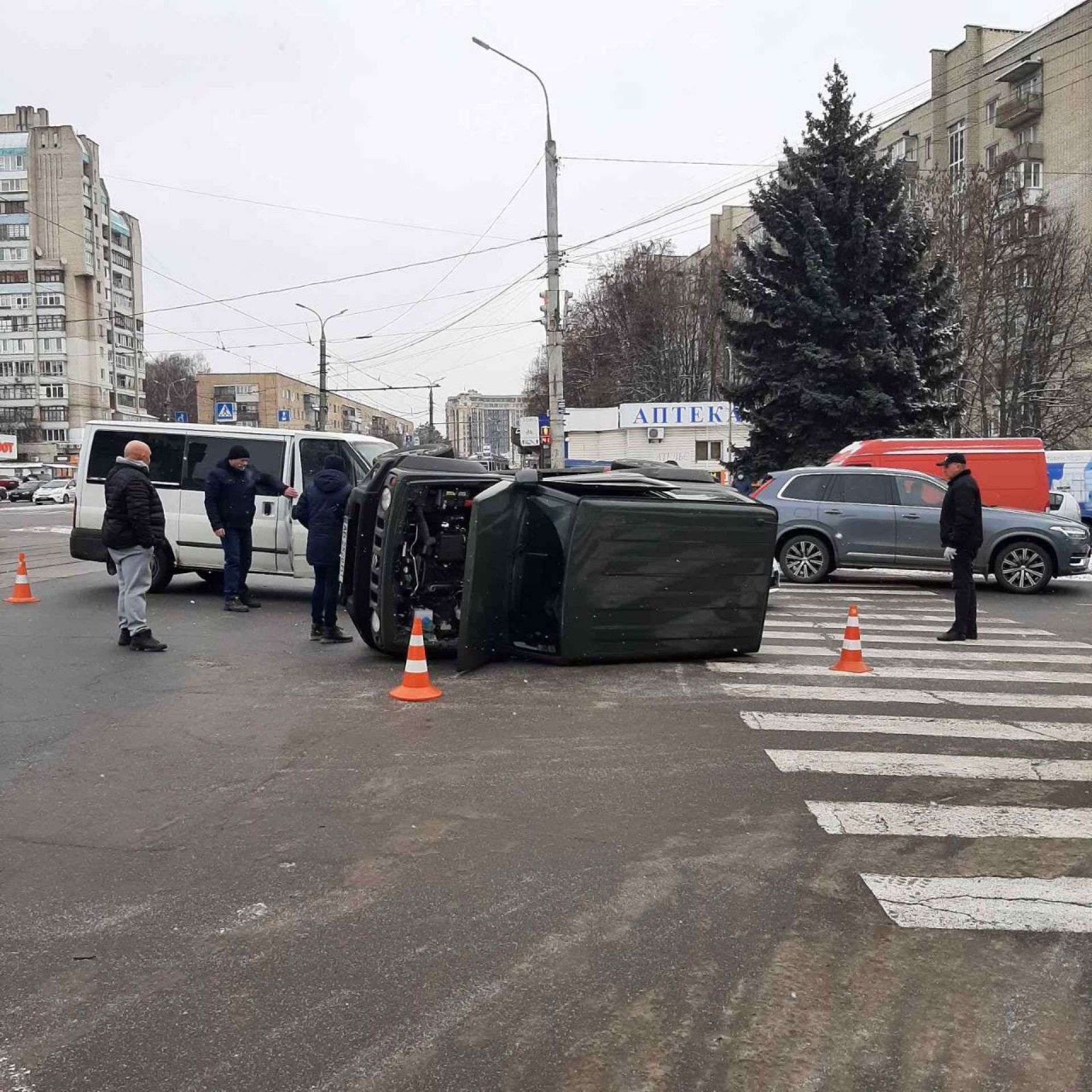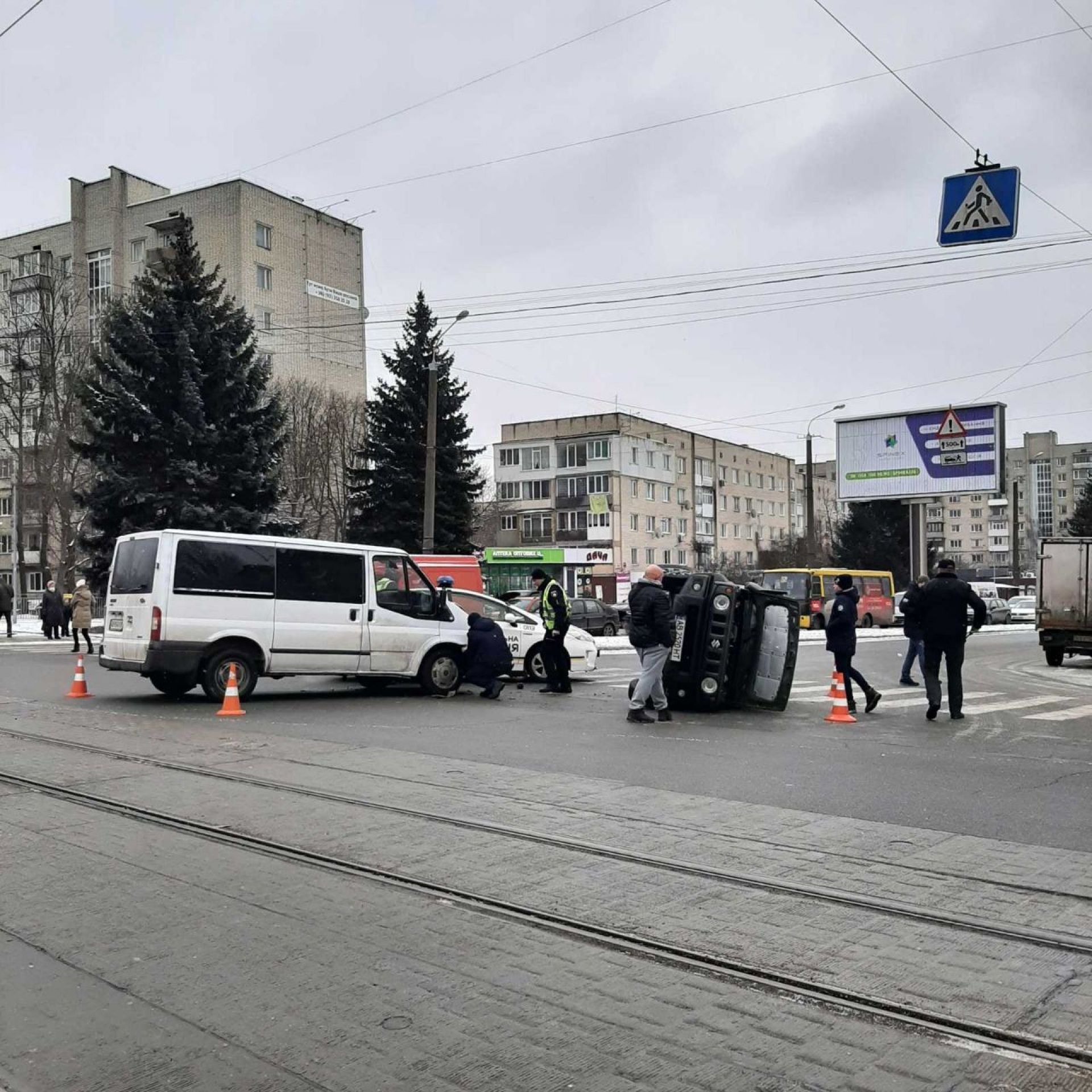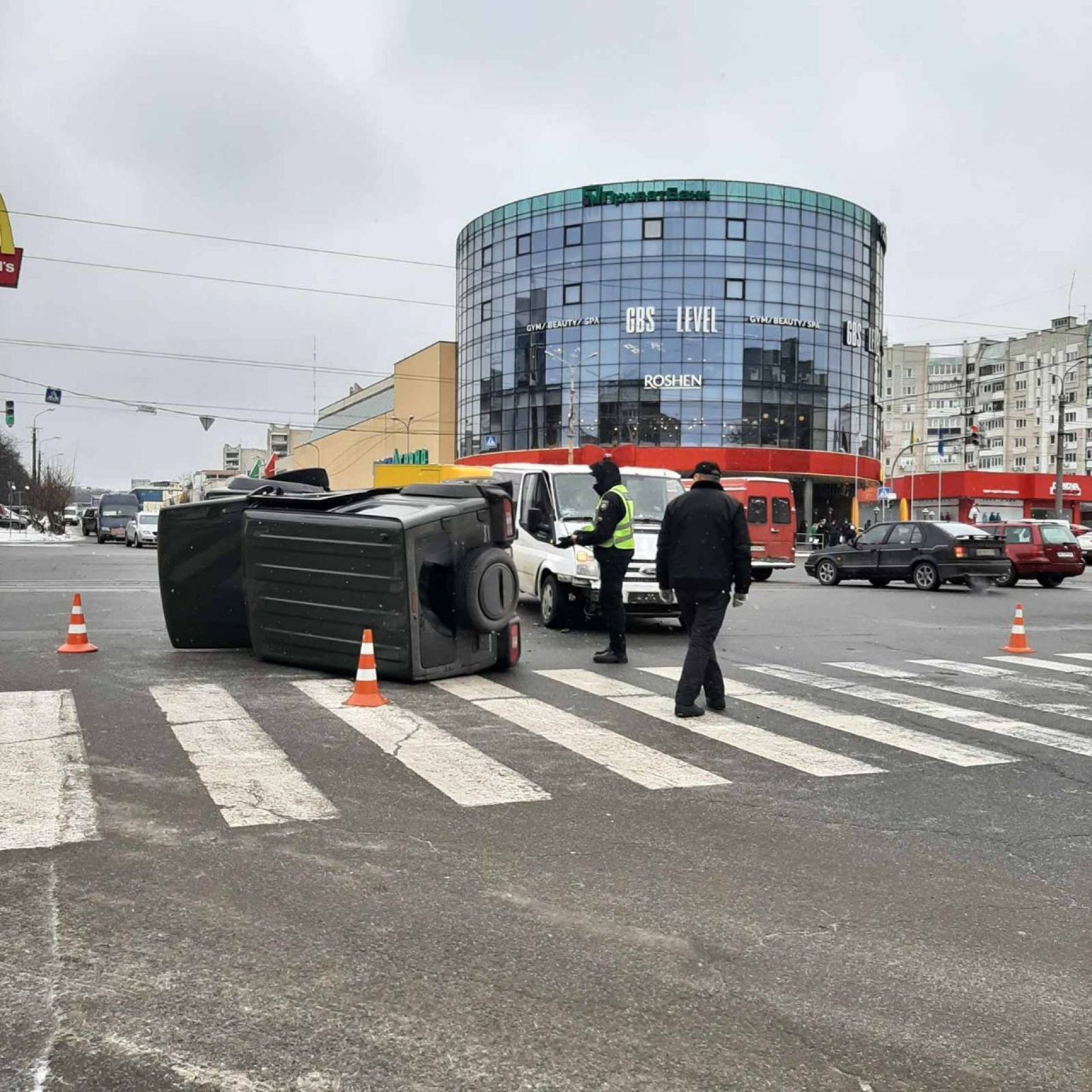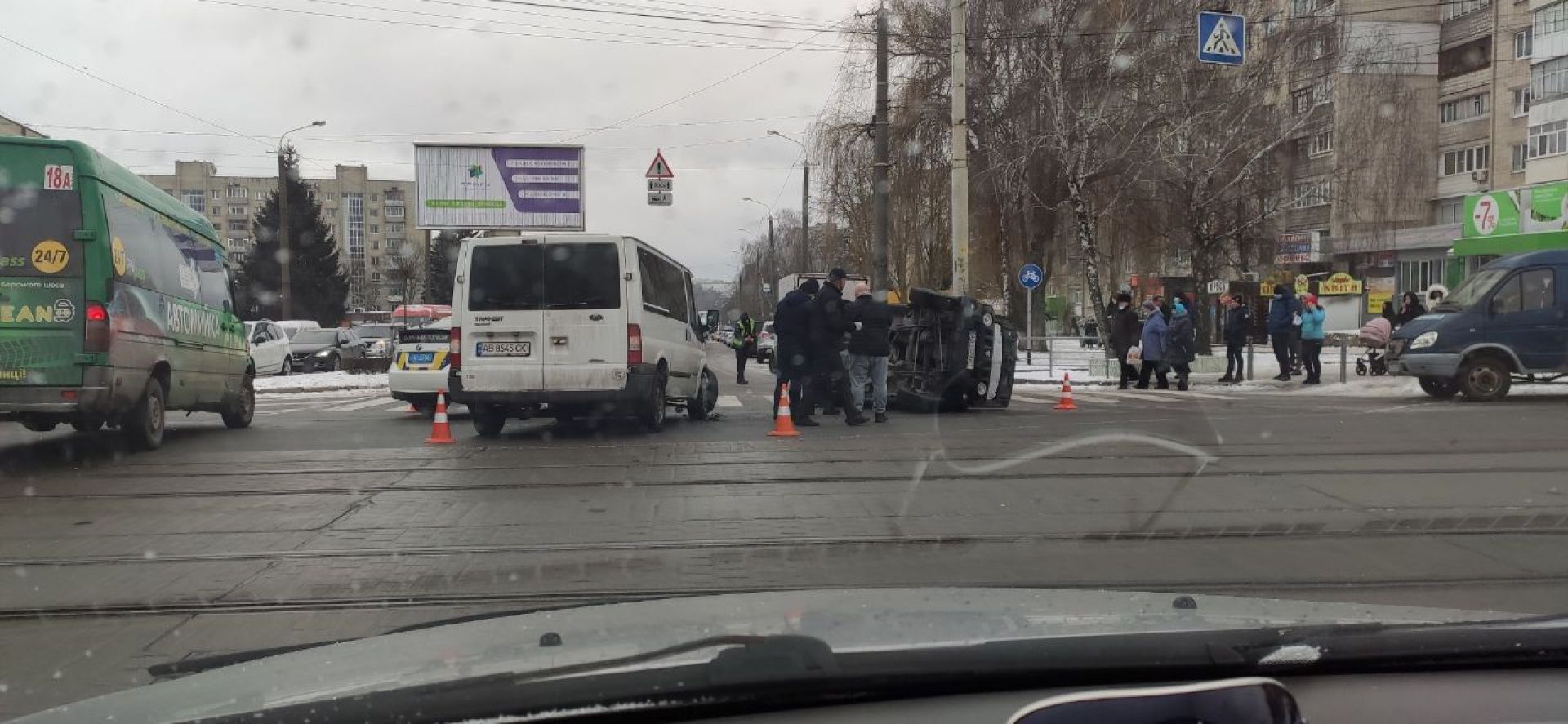 - У Вінниці дорогу не поділили два автомобіль. Одна машина перекинулася. Дивом обійшлося без потерпілих.