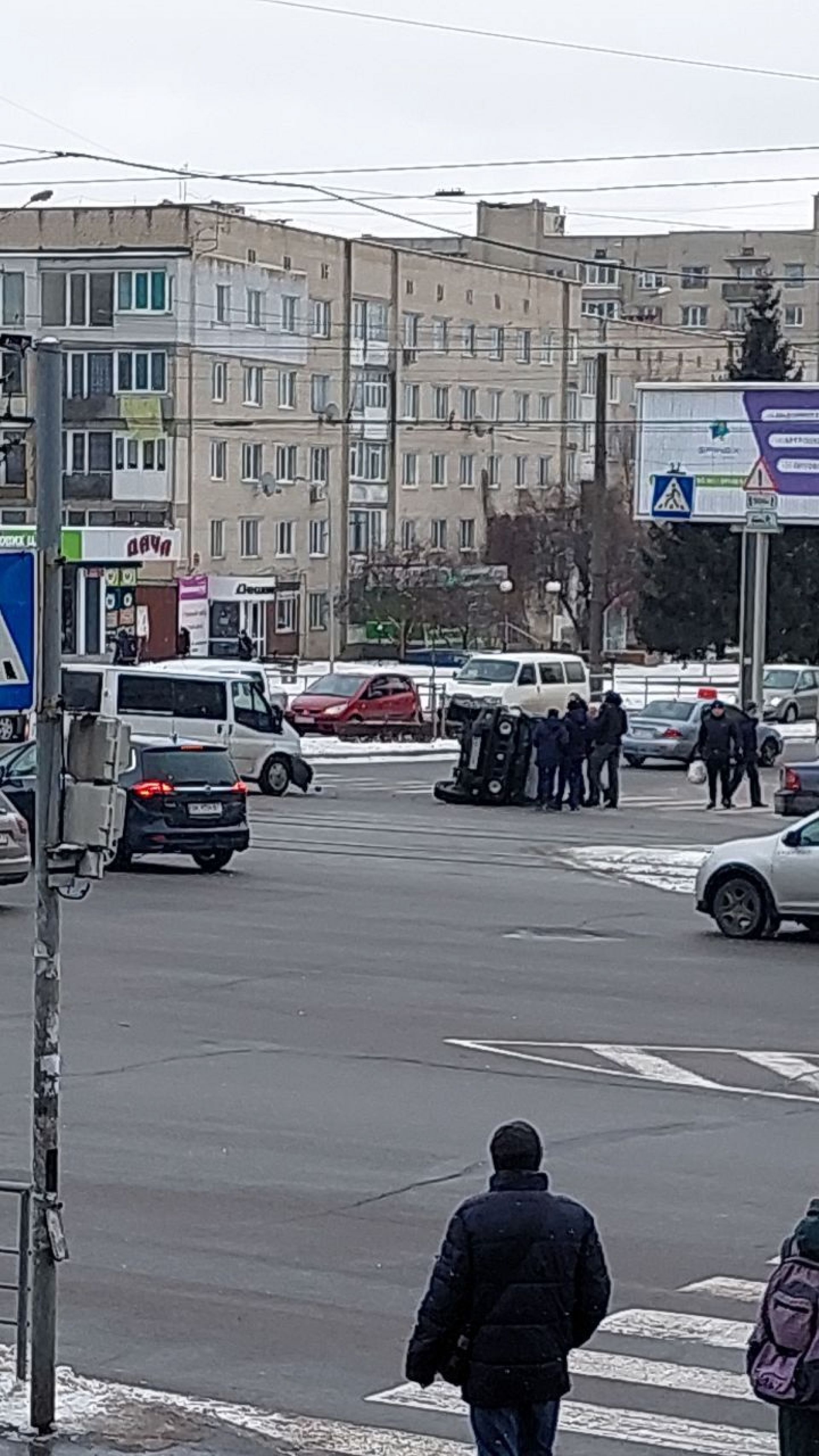 Також до редакції читач надіслав фото та відео з місця події. На них видно, як автівка боком лежить на пішохідному переході. Поруч зібралися люди та поліція.