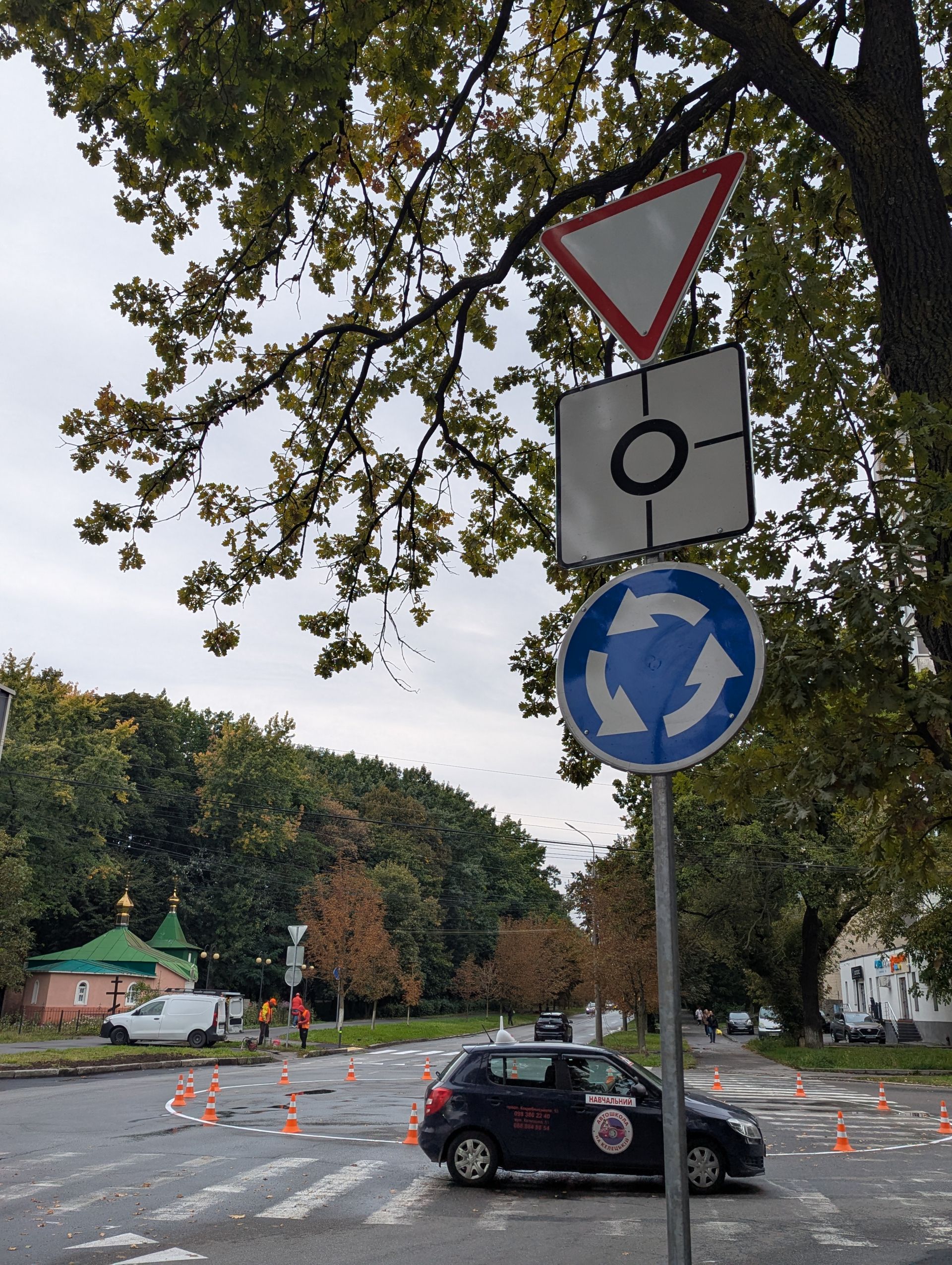 - Нові дорожні знаки встановлені з урахуванням зручності та безпеки: «Дати дорогу», «Круговий рух» і «Пішохідний перехід».
