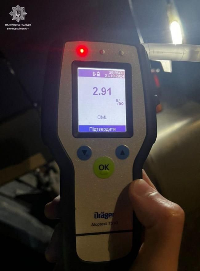- На трасі М-30 патрульні зупинили автомобіль, за кермом якого сидів чоловік з неймовірним рівнем алкоголю в крові — 2,91 проміле. Це майже в 15 разів перевищує допустиму норму.