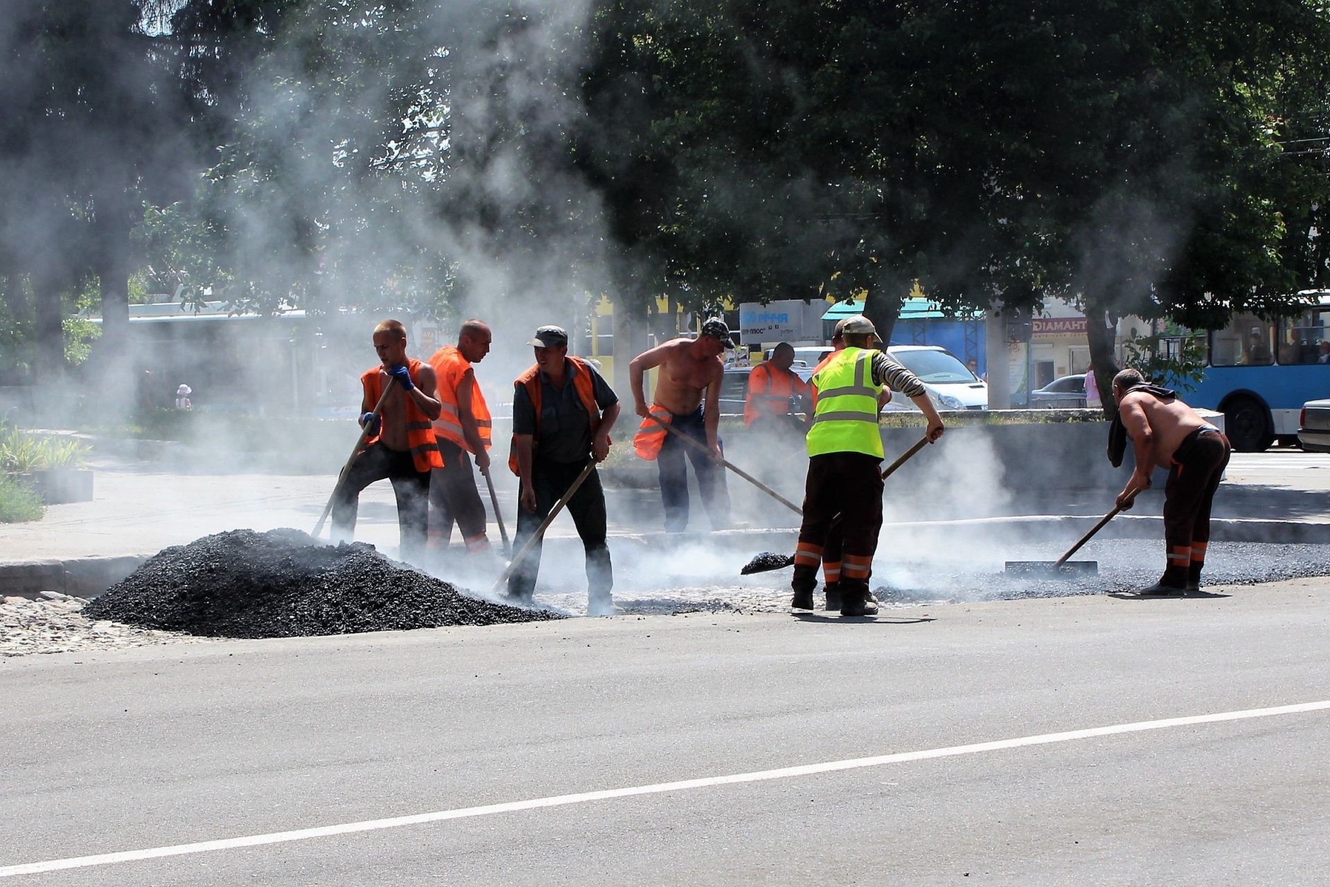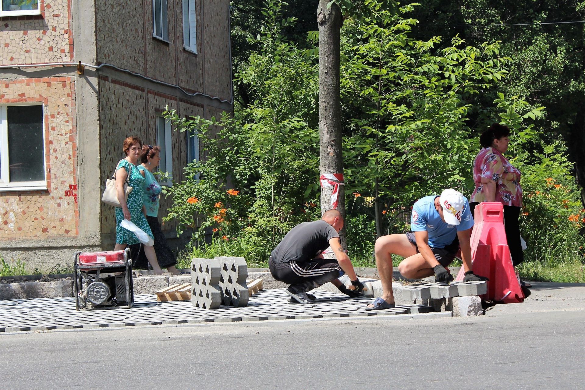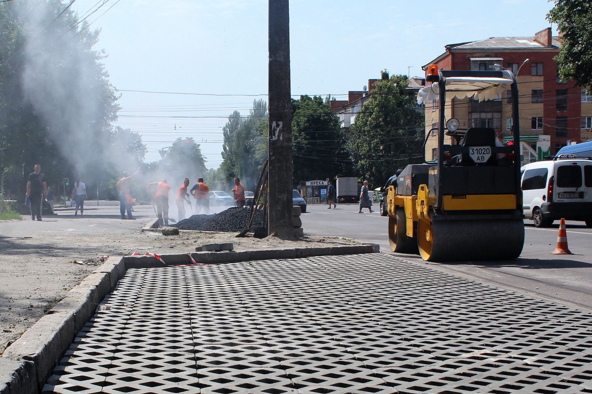 Робітники працювали над еко-парковкою навіть в суботу. Вони вкладали асфальт, на де згодом буде еко-парковка. Усього на 600-річчя (на відрізку від Келецької до Хмельницького шосе) облаштують шість еко-парковок на 35 місць. І три з них вже зробили — залишилося тільки засіяти траву і майданчик готовий.