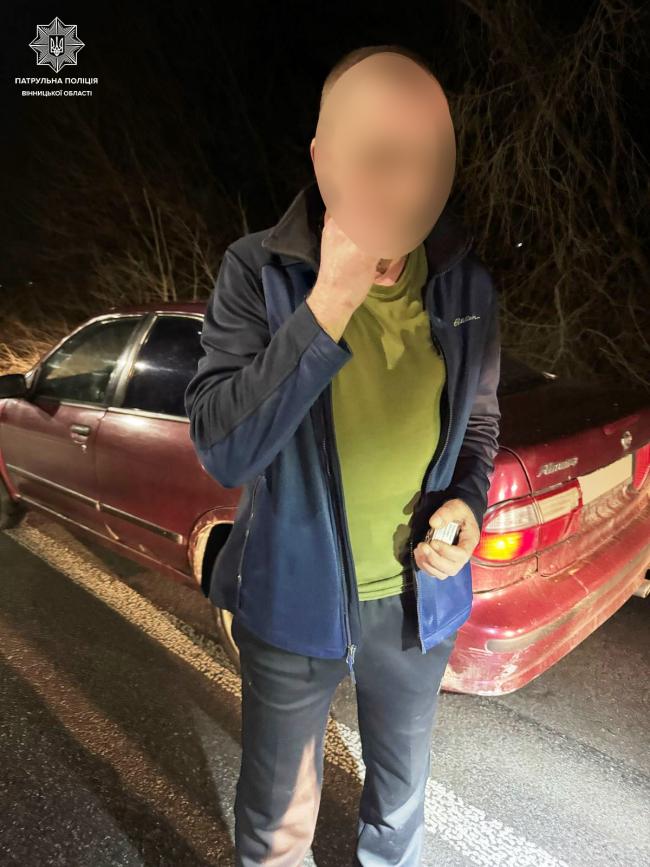В ніч на 14 березня під час комендантської години, на вулиці Тиврівське шосе патрульні зупинили автомобіль Nissan Almera, що порушив ПДР. За кермом був 41-річний чоловік. Інспектори помітили в нього ознаки алкогольного сп'яніння. Пройти перевірку на спецприладі Драгер порушник відмовився.