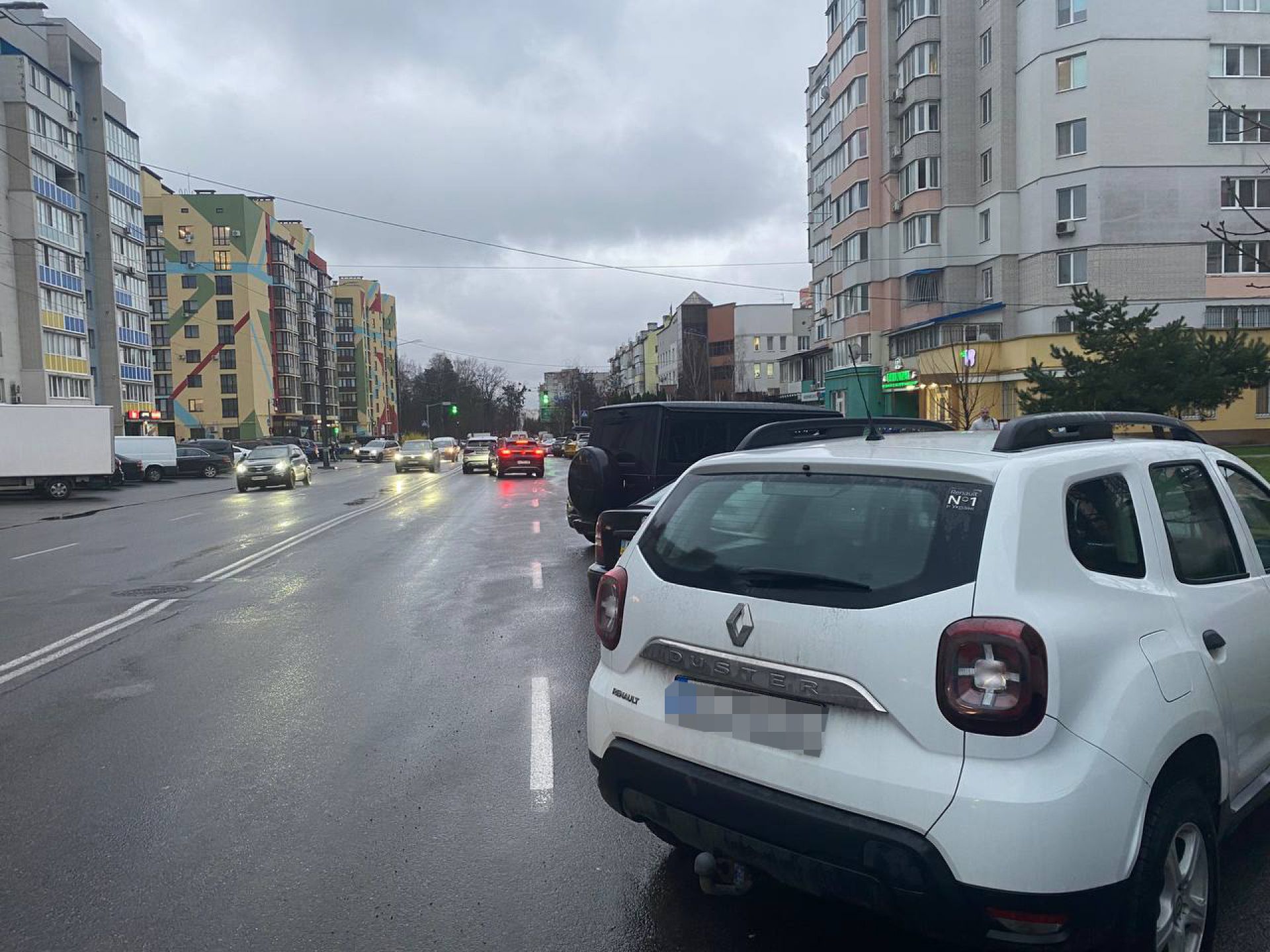 На вулиці Зодчих є по дві смуги в кожному напрямку, але через неправильне паркування машини займають частину правої смуги. Заступник начальника відділу паркування Артур Андрущенко пояснює, що це змушує інших водіїв різко перелаштовуватися, що може призвести до аварій.