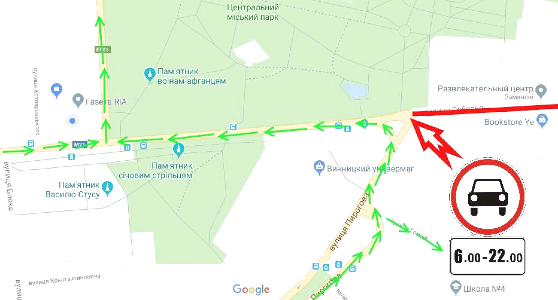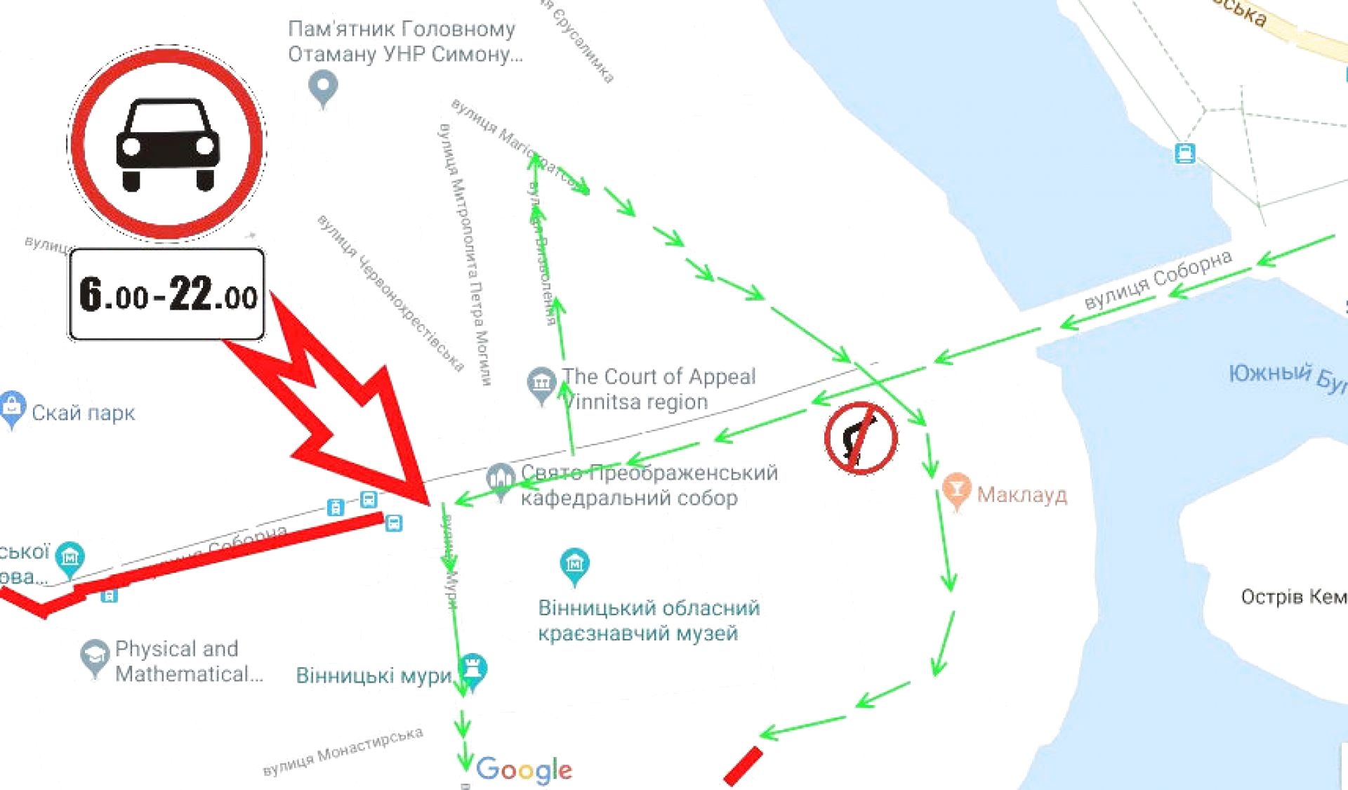 Обмеження не стосуються громадського транспорту та тих вінничан, які мешкають, працюють, або обслуговують об’єкти на Соборній. Також на вулицю можна в’їжджати водіям з інвалідністю, таксі, екстреним та комунальним службам.