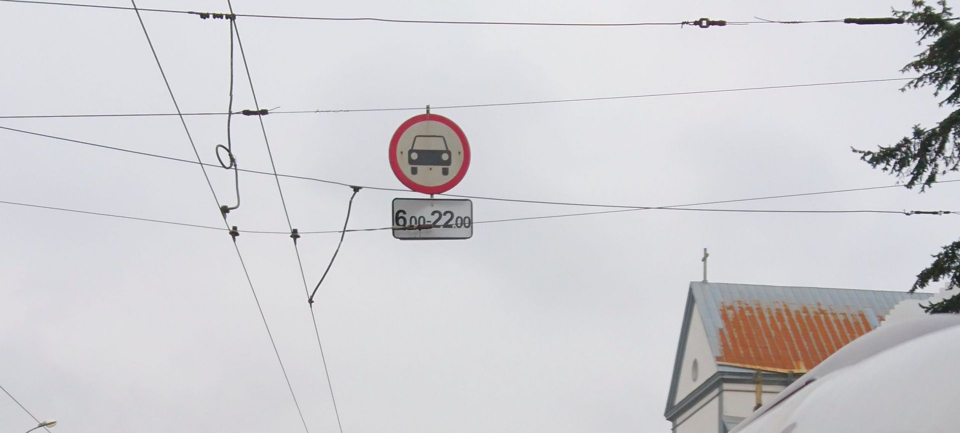 Забороняючі знаки встановлені від площі Гагаріна з однієї сторони вулиці та від перехрестя Соборна-Мури з іншої сторони.