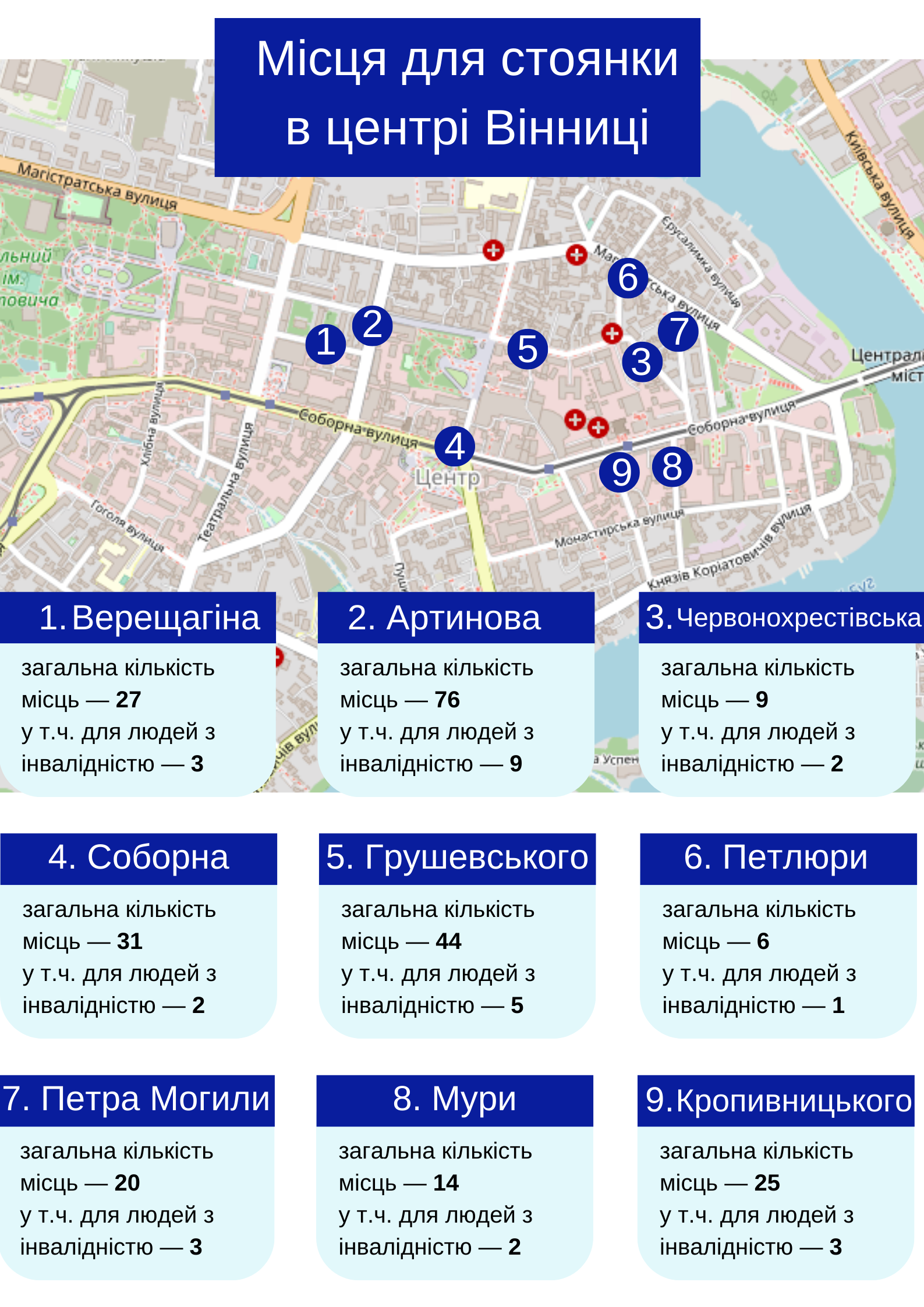 Понад 270 паркомісць у центрі Вінниці. Зробили мапу майданчиків, на яких дозволено паркуватися