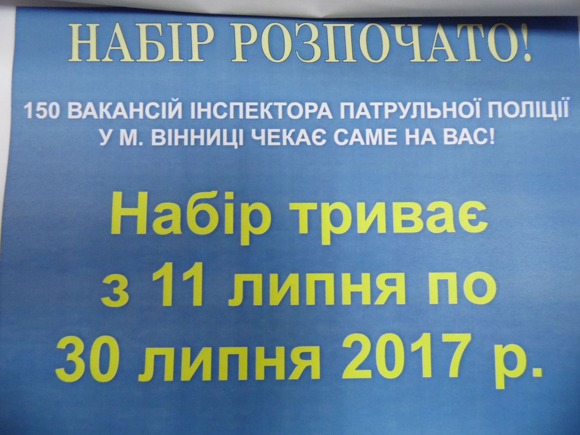 - Сьогодні, 11 липня, почали прийом анкет в патрульну поліцію. Шукають 150 людей для роботи на трасах і в місті.