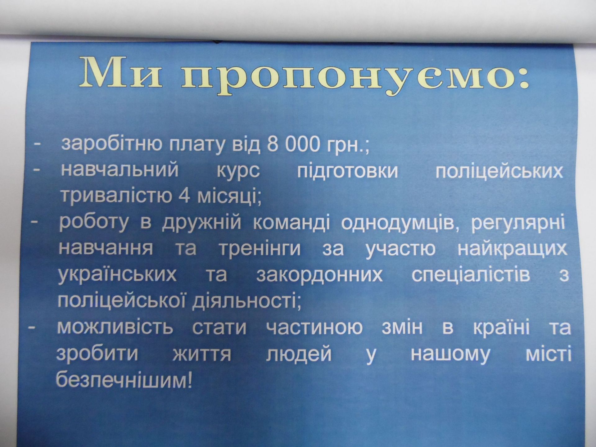 - Головний поліцейський області сказав: «Ми очікуємо людей, які готові віддати частину свого життя службі».