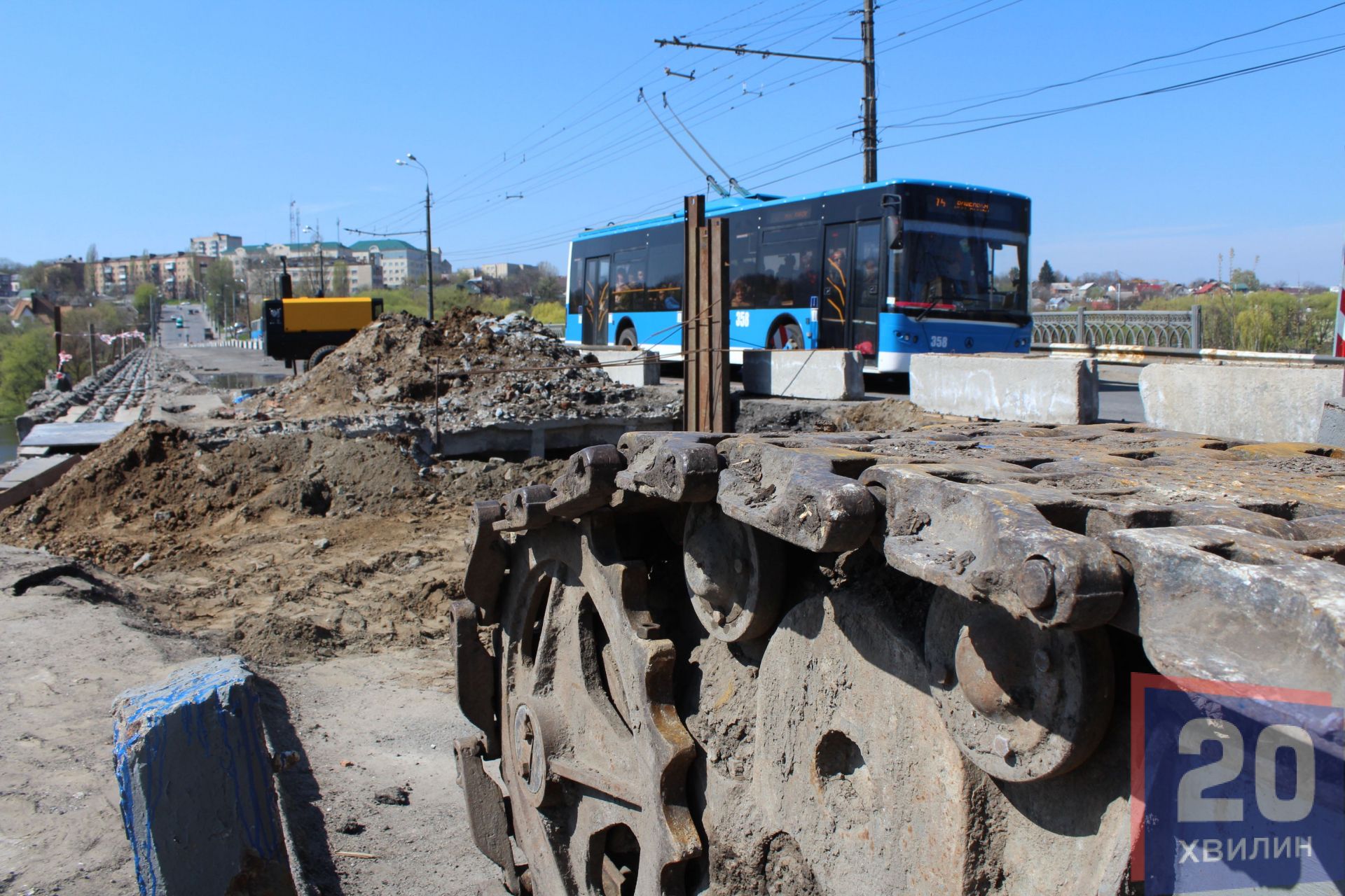 У квітні людей на будівництві стало більше: зняли перила, асфальт та почали рити котлован, щоб замінити крайню балку. Але, як казали робочі, тут теж будуть затримки.