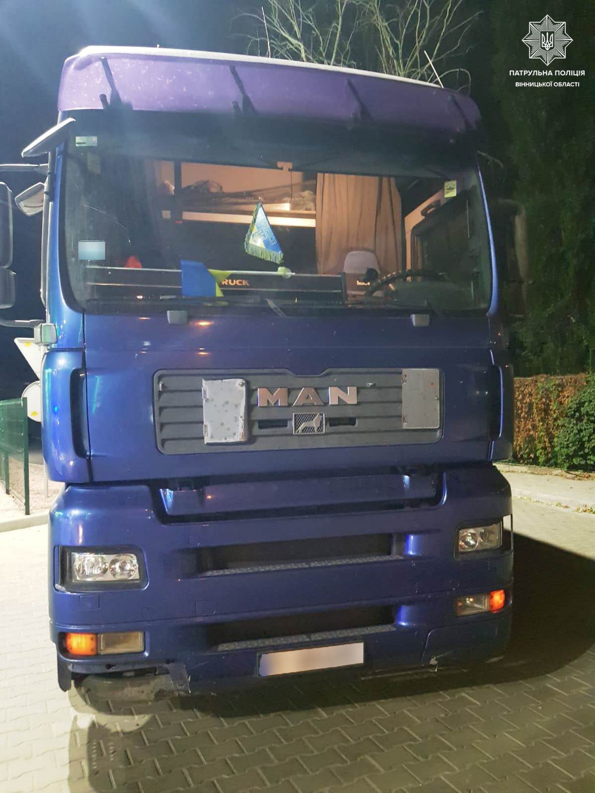 У Вінниці патрульні затримали 37-річного водія вантажівки MAN, який вчинив ДТП та втік. Про це повідомляє відділ комунікації поліції Вінницької області.