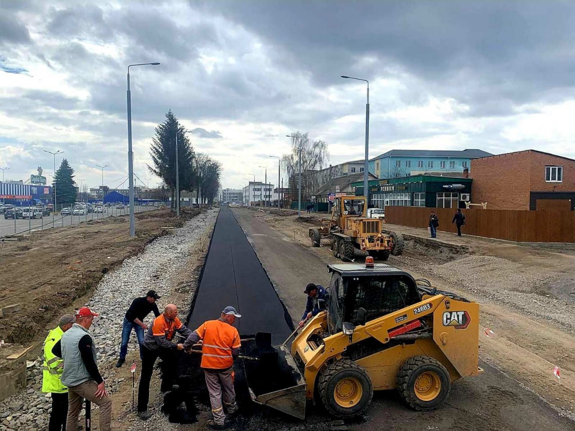 Напередодні на вулиці провели роботи з геотекстилю та відсипки щебенем і відсівом всієї площі проїжджої частини дороги. Далі приступили до укладання технологічного шару бетону та асфальтування на ділянці близько 400 метрів, де пролягатиме «оксамитовий шлях» для трамваїв. Загальна площа бетонування — 2800 м2, заасфальтованого покриття - 2000 м2.