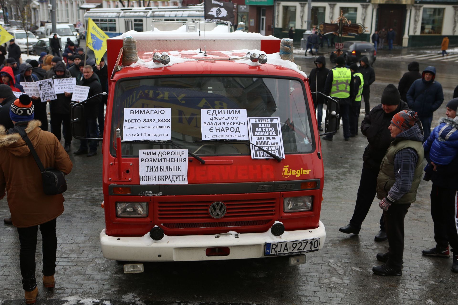 — У нас таке обурення, що нас знову надурила влада, тому ми вийшли на протест», — каже голова вінницького осередку «Автоєвросили» Олександр Марцинківський. — Скоро депутати будуть голосувати за скасування прийнятих законопроектів. Якщо не скасують, президент ще може використати вето й не дати законам вступити в дію.
