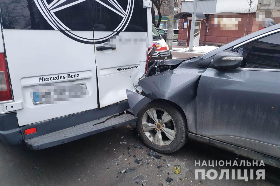 - У Вінниці сталась аварія. Позашляховик Hyundai зіштовхнувся з маршрутним таксі Mercedes Sprinter.
