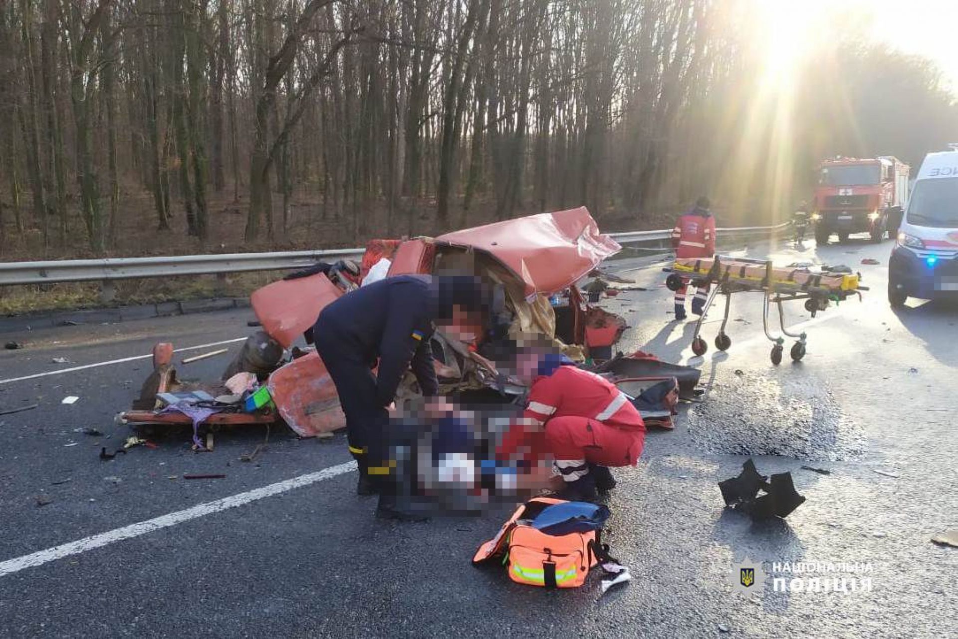 - У результаті аварії водій та пасажир легковика загинули на місці події, ще один пасажир з цього ж авто у лікарні.