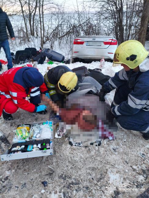 - У аварії постраждали троє людей. Рятувальники ДСНС разом із медиками оперативно допомогли потерпілим, забезпечили безпеку на слизькій дорозі.