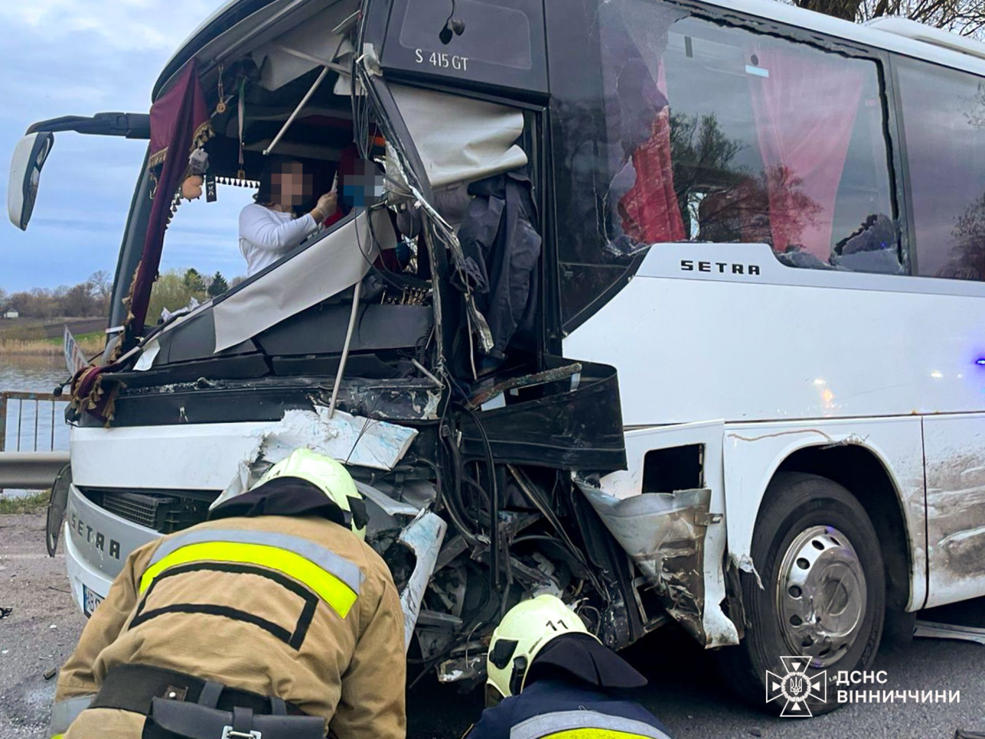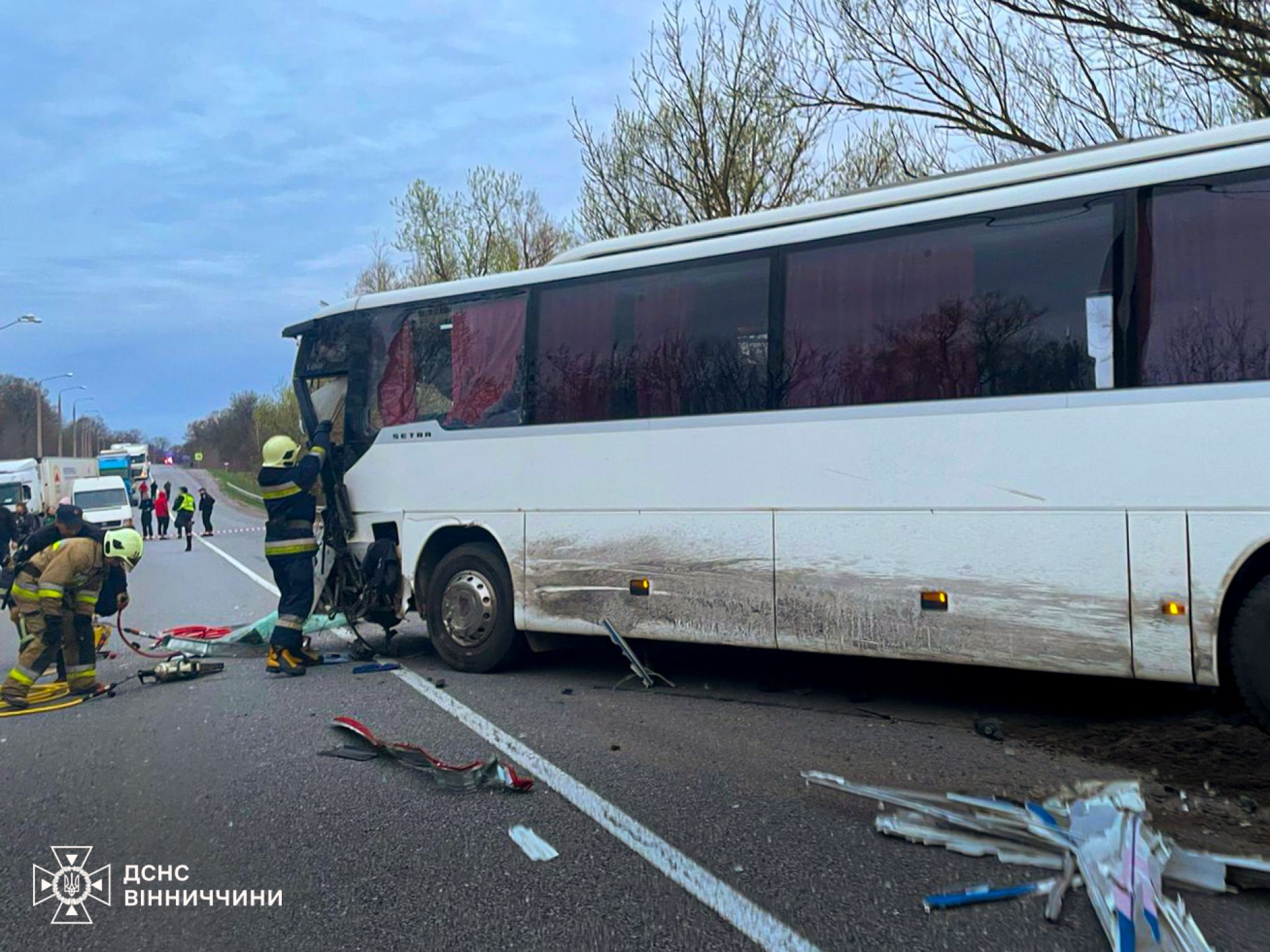 Стали відомі деталі ліквідації наслідків зіткнення вантажівки та рейсового автобуса, що сталося ввечері 15 квітня 2026 року. Про них повідомляють у Головному управлінні ДСНС України у Вінницькій області,