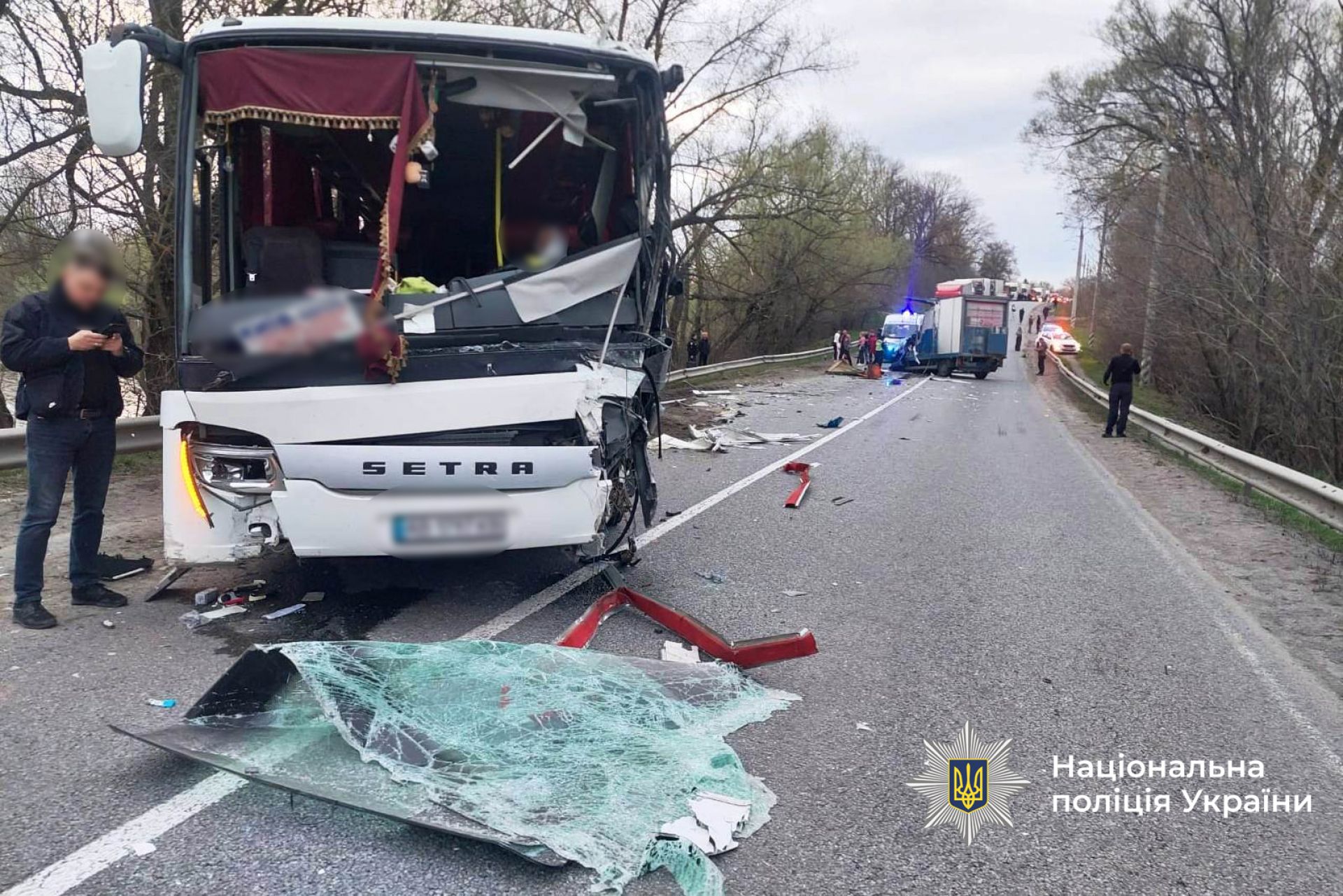 З салону автобуса поліцейські вивели 15 пасажирів. Окрім водіїв, травми отримали ще троє людей: двоє пасажирів із вантажівки та один із рейсового автобуса. Усіх госпіталізовано до лікарні.