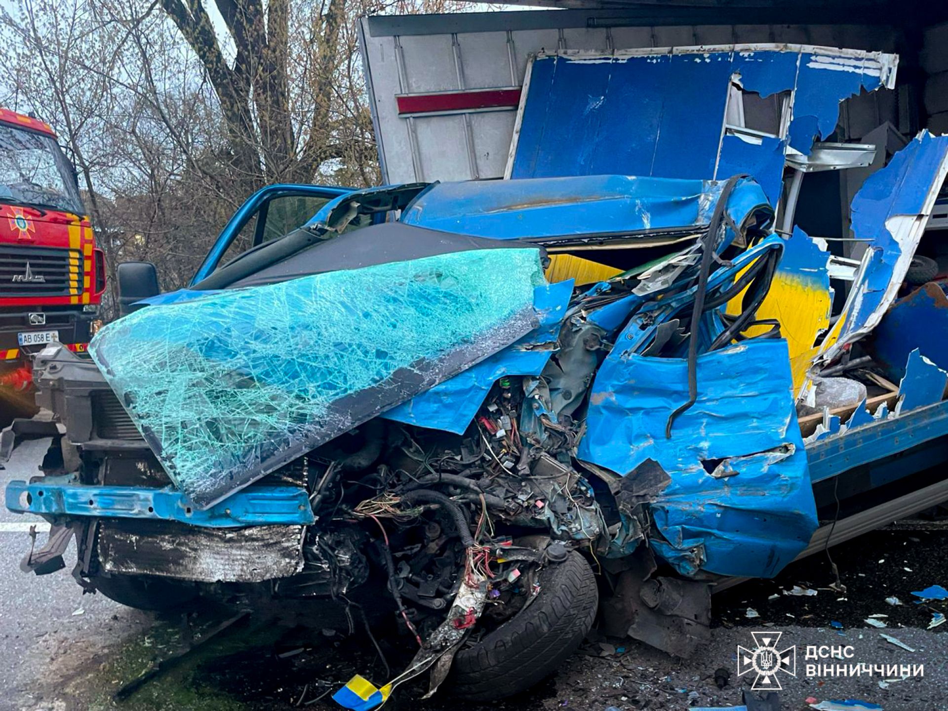 - Вантажівку та пасажирський автобус перетворило на купу металобрухту. Одного водія вбило на місці, іншого — затиснуло в кабіні.