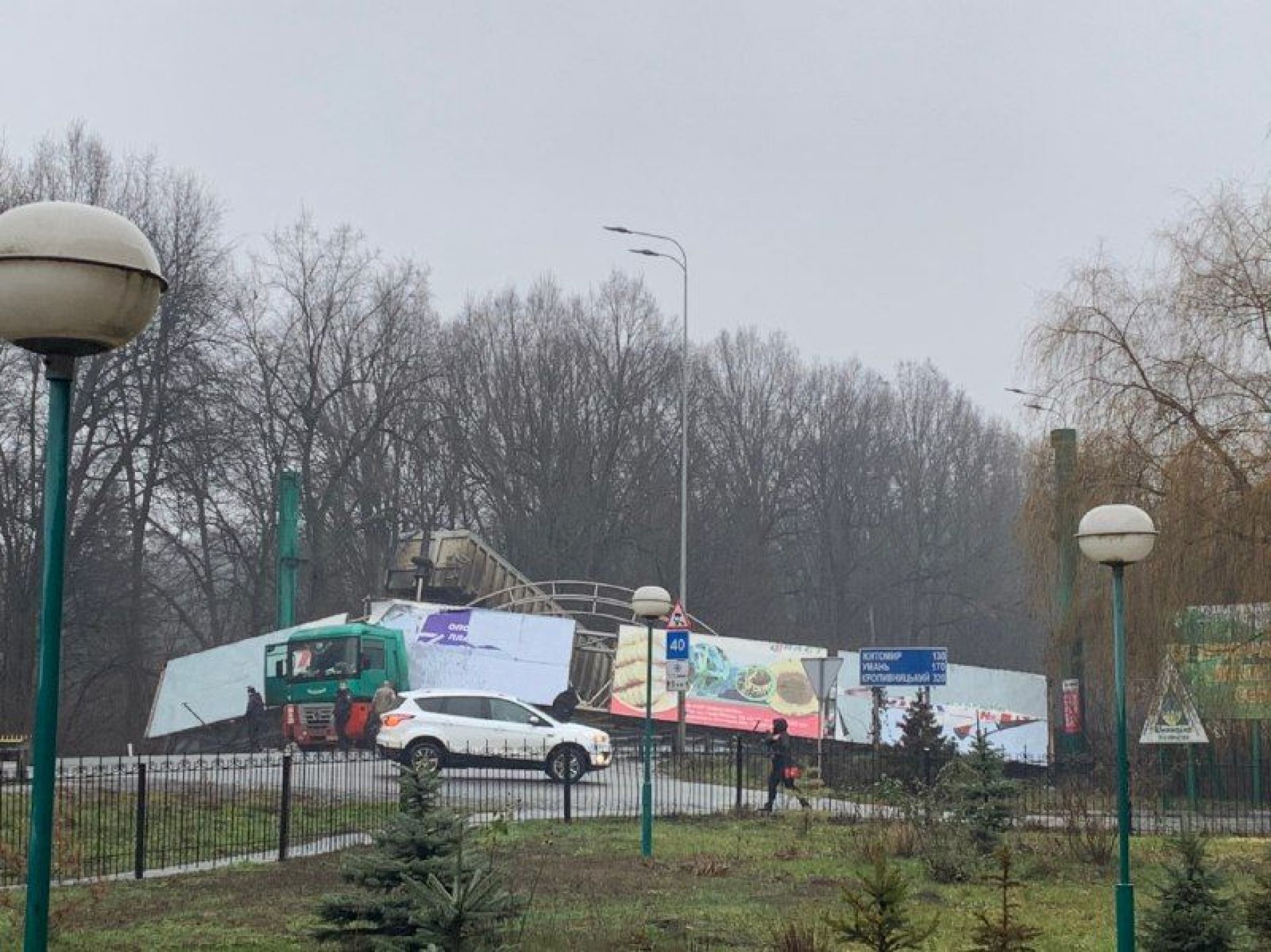 — У вантажівки самовільно піднялась вантажна платформа, в результаті чого зачепило та повалило рекламний щит, — пояснили в патрульній поліції. — На місце приїхав патруль поліції, який регулює дорожній рух.