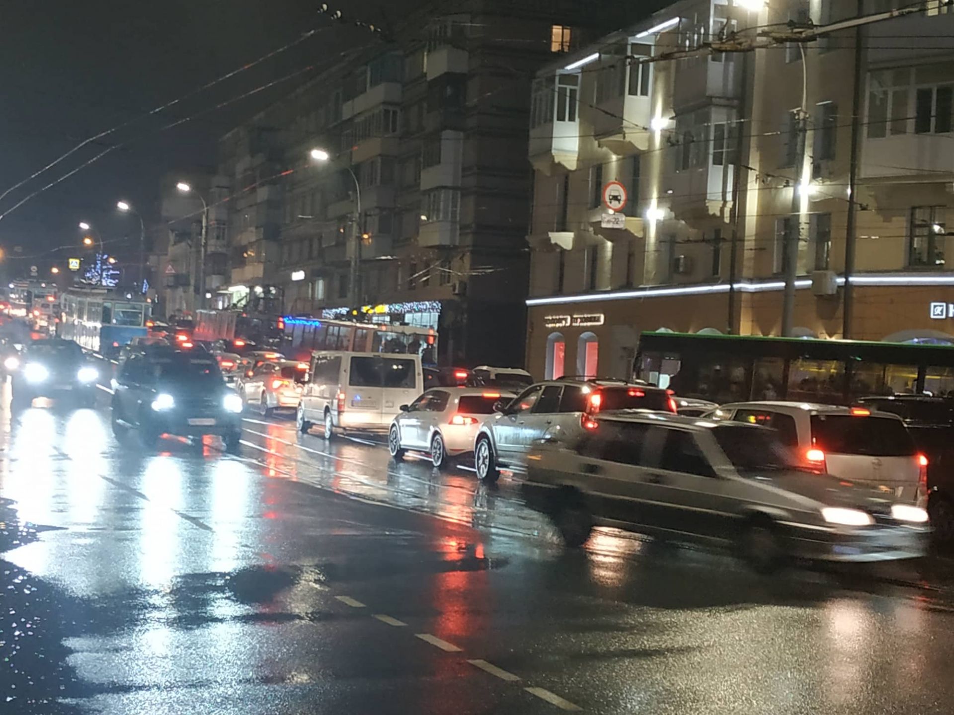 Транспорт з боку залізничного вокзалу також рухався повільно. Після 18.00 дорога звідти у центр, як розповідали редакції читачі, зайняла півтори години.