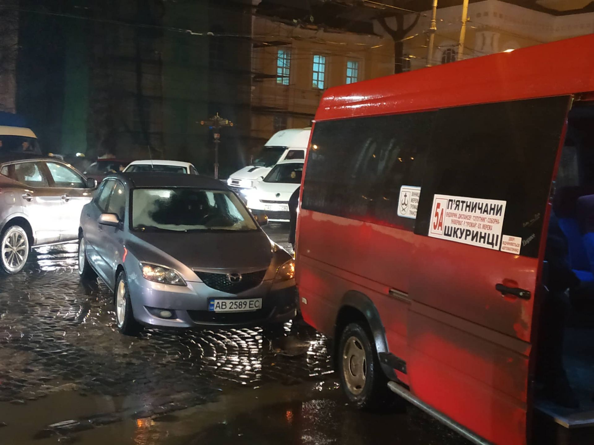 До того часу по всій Вінниці вже був суцільний затор. Для прикладу: тролейбус від Універмагу до Чорновола (через Театральну та Київській міст) їхав більше години. Зупинявся через кожні кілька метрів на хвилин десять. Люди просили відчинити двері, виходили і йшли під дощем пішки.
