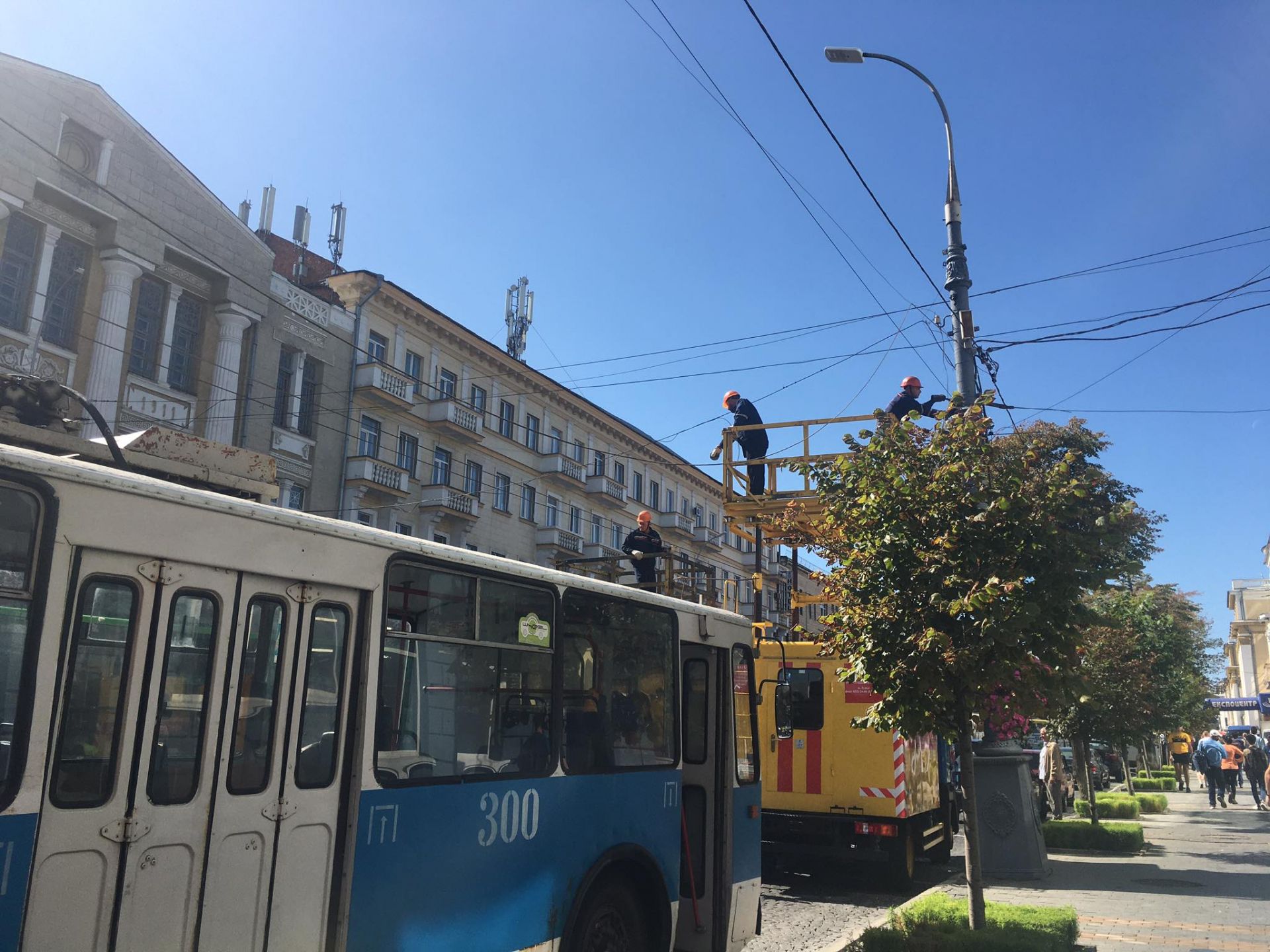 До редакції почали надходити повідомлення про те, що «Соборна стоїть». З фото видно, що сталася поломка на електромережі. На місці події уже працює аварійна бригада.