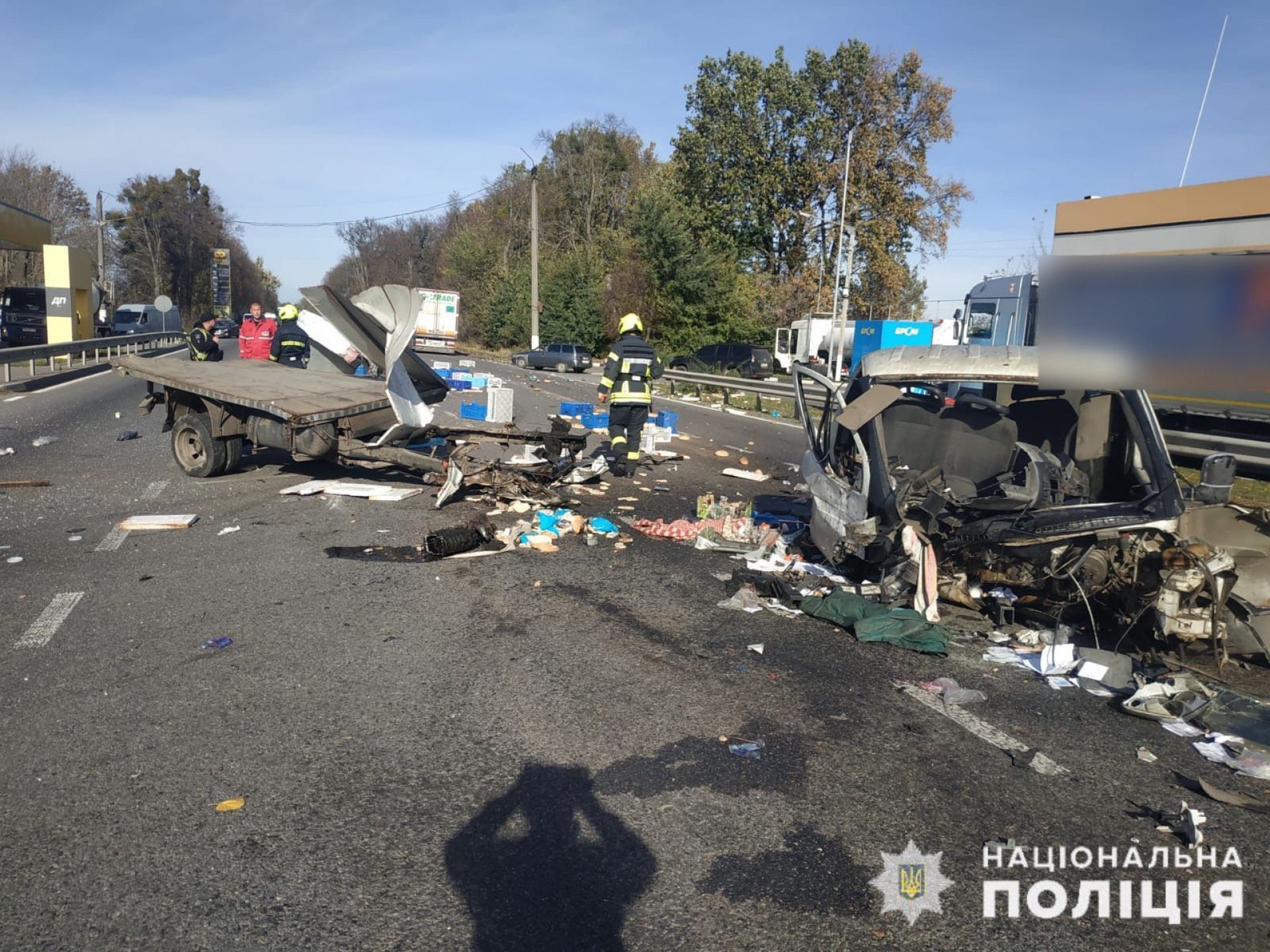 — За попередньою інформацією слідства, 28-річний водій вантажівки DAF з напівпричепом, житель Дніпропетровської області, допустив зіткнення з автомобілем Peugeot під керуванням 54-річної мешканки Львівської області, та попутнім транспортним засобом ГАЗ, за кермом якого перебував 68-річний вінничанин. Після цього керманич ГАЗ виїхав на смугу зустрічного руху, де зіткнувся з Renault Kangoo, — зазначають у поліції.