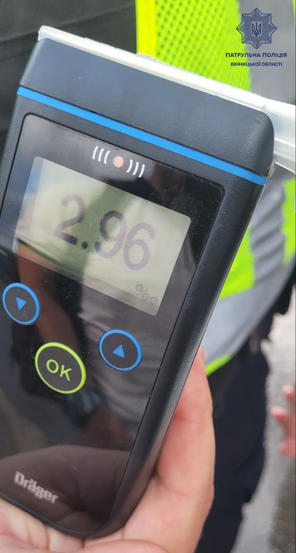 — Спілкуючись із порушником, інспектори помітили у винуватця ДТП ознаки алкогольного сп’яніння. Чоловік погодився пройти огляд на місці за допомогою алкотестера. В його організмі виявили 2,96 проміле алкоголю, що майже в 15 разів перевищує допустиму норму, — йдеться в повідомленні патрульної поліції Вінницької області.