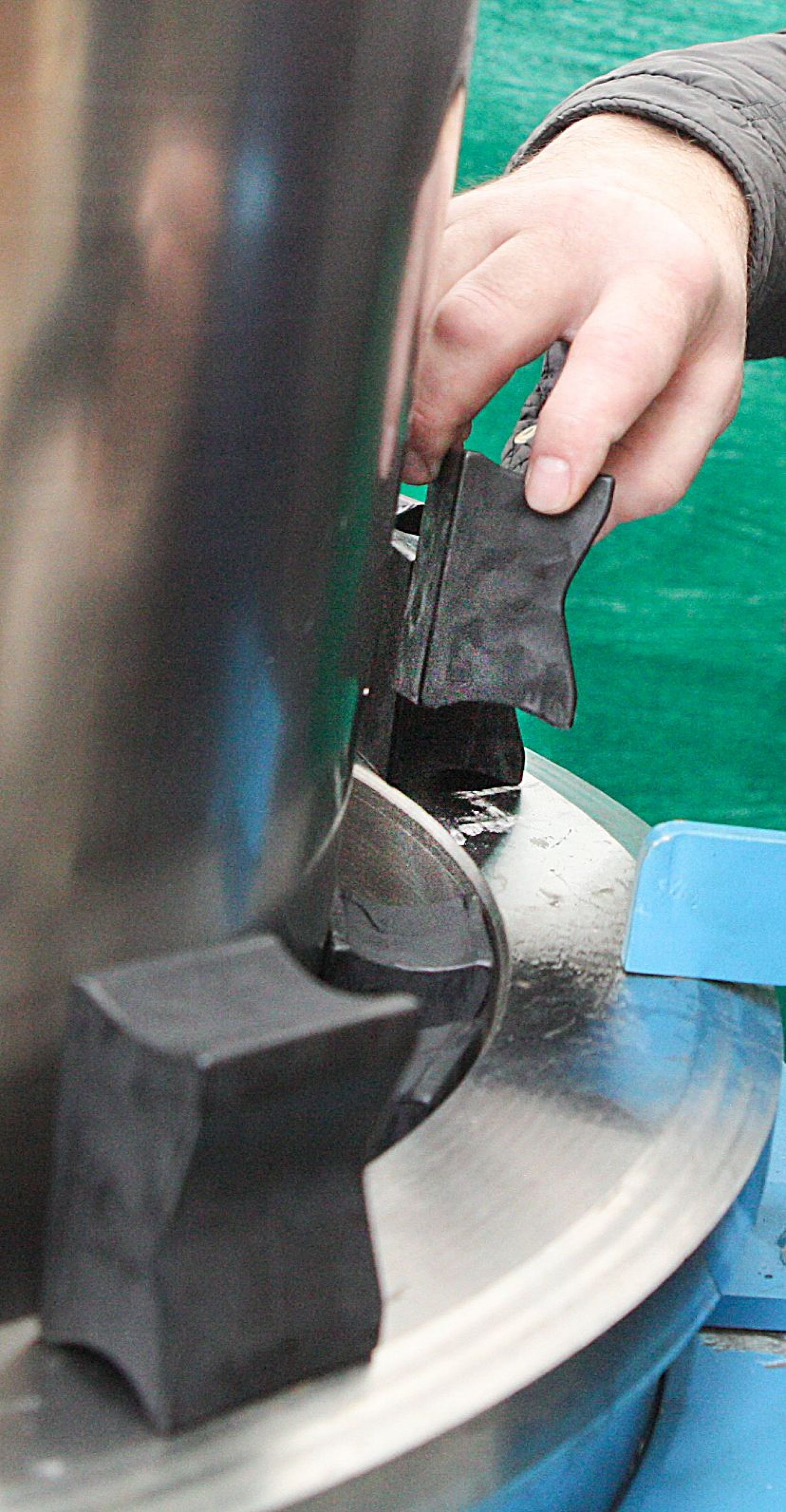 Прес, який придбала транспортна компанія, допоможе якісно обслуговувати колеса, які зношуються під вагою вагонів. Під тиском у 50 атмосфер, обладнання формує гумові вставки, що виконують роль амортизаторів. Його роботу на півтора метровій глибині забезпечує потужний гідроциліндр, що працює на мастилі. За раз можна сформувати щонайменше два десятки деталей.