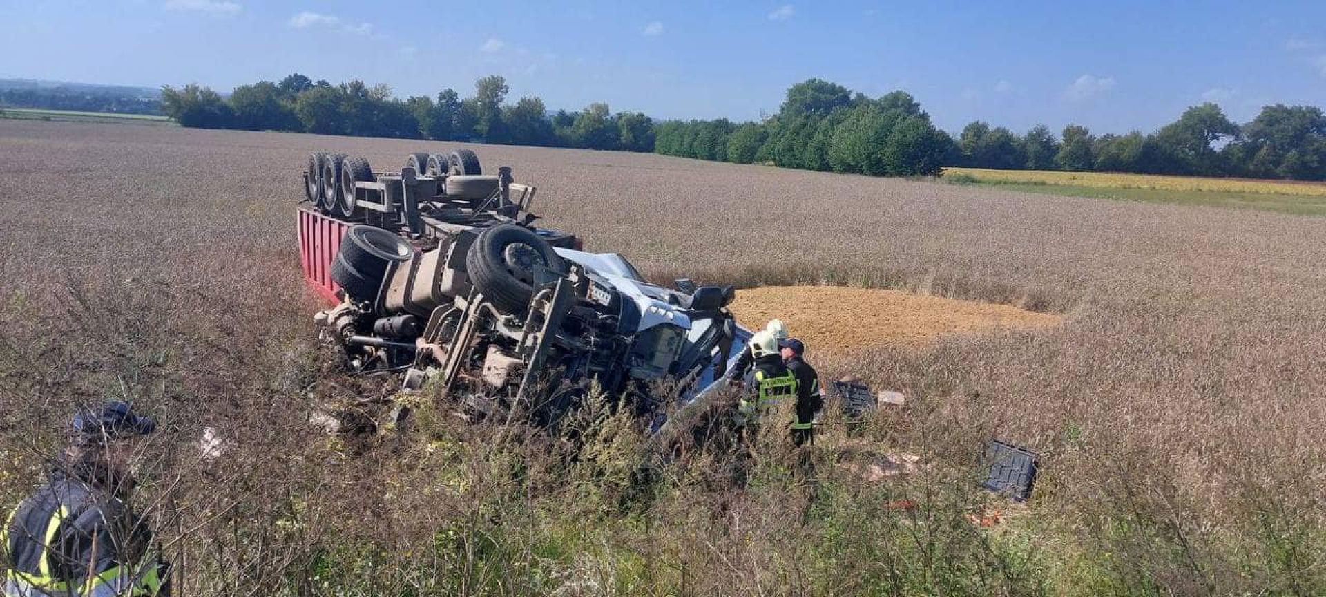 - Вантажівка перевозила понад 20 тонн піску. Машина знесла відбійники та перекинулася в полі.