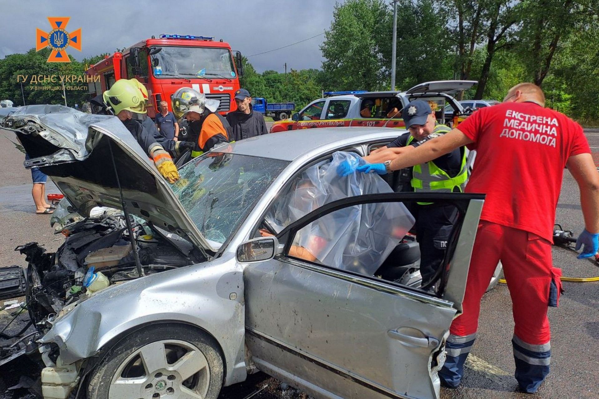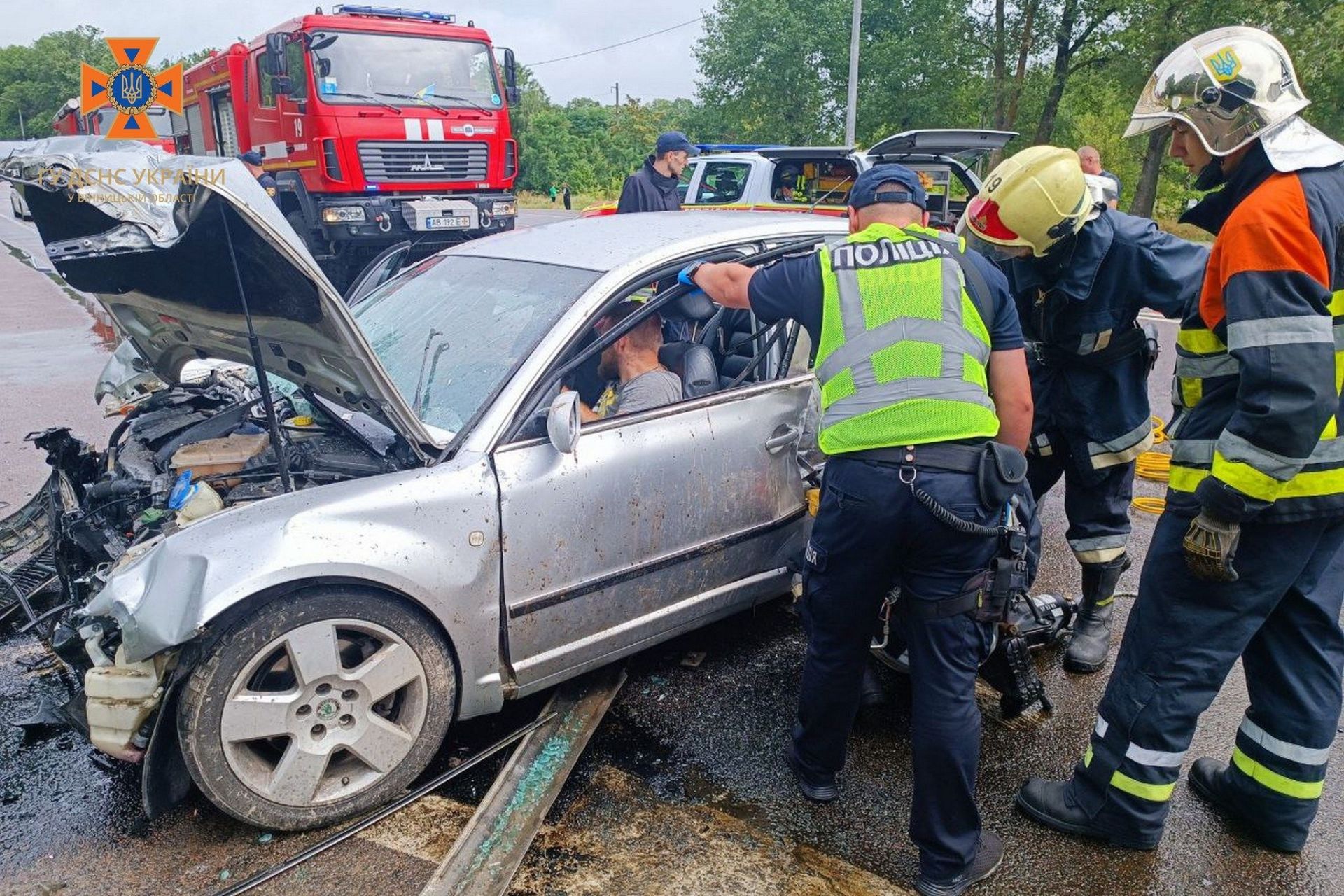 Автопригода сталася вранці 7 серпня об 11.49 поблизу села Сальник. Фото та відео з місця події оприлюднили на сторінці Головного управління ДСНС України у Вінницькій області.