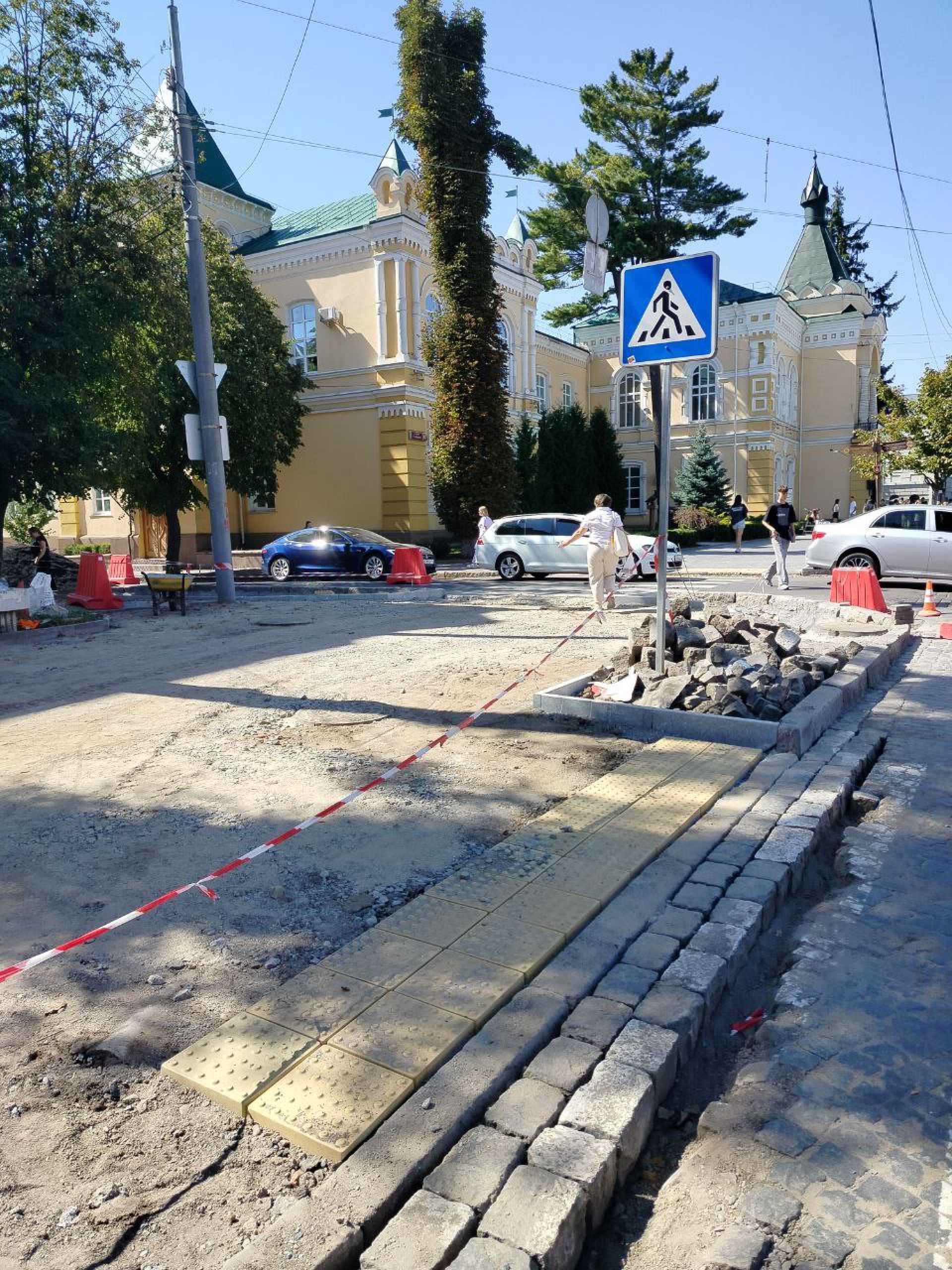 Зараз роботи тривають на перетині вулиць Театральна та Соборна. Це частина проєкту «Рух без бар'єрів», який передбачає створення першого безбар’єрного маршруту у Вінниці. Він пролягає від вулиці Зулінського до середмістя.