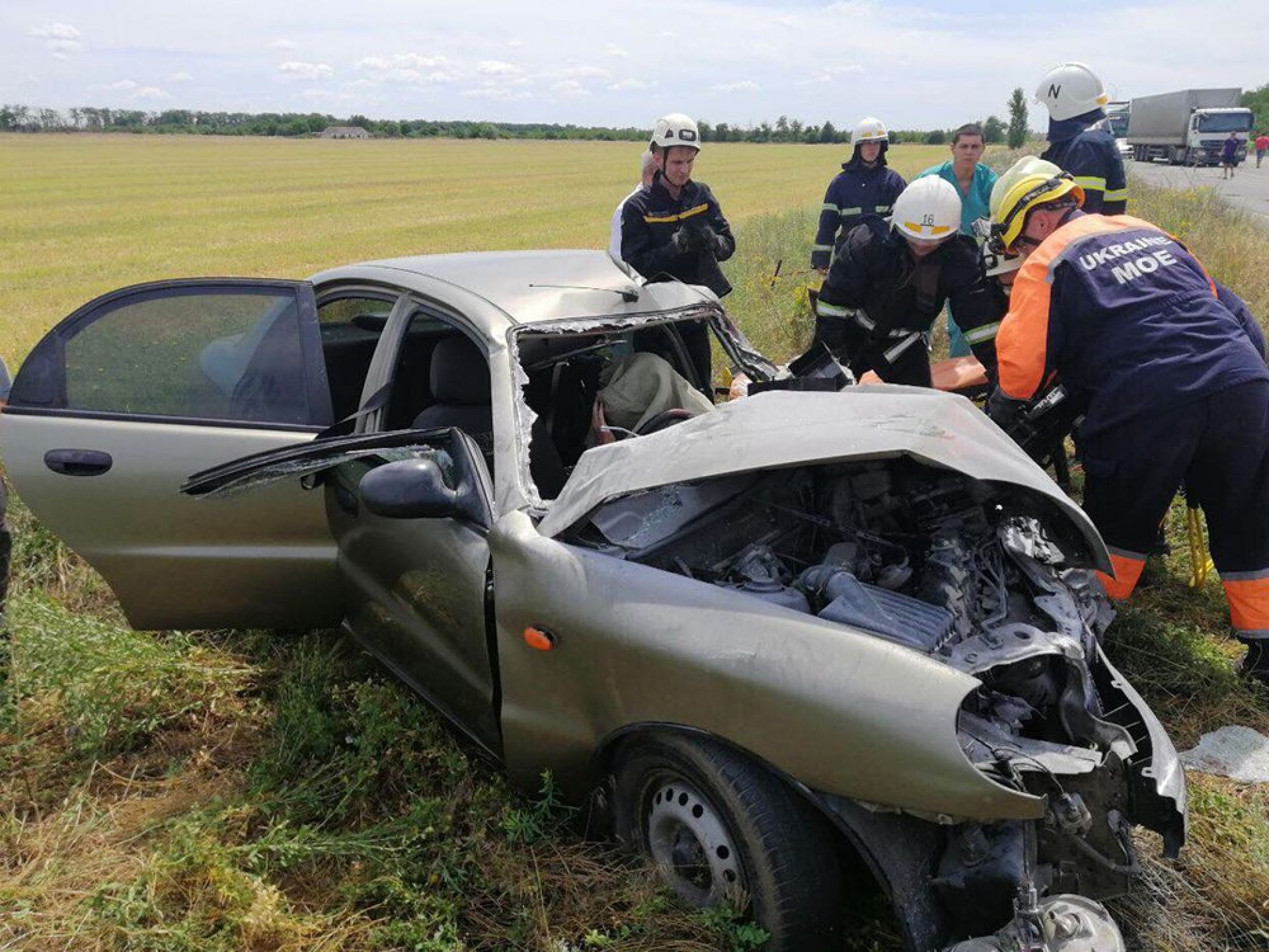 У вівторок, 9 липня, на об'їзній дорозі в сторону Херсона під Миколаєвом зіткнулися тягач Mercedes і Daewoo Lanos. У легковику їхала родина з Вінниччини. На жаль, чоловік загинув. Жінка та маленька дівчинка у лікарні.